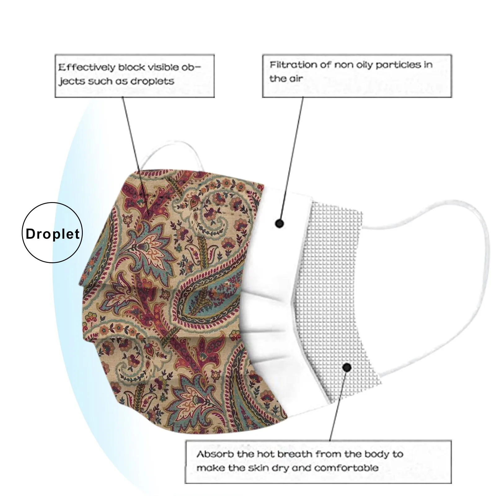 1050100 шт mascarillas взрослого маска с принтом пейсли одноразовая...
