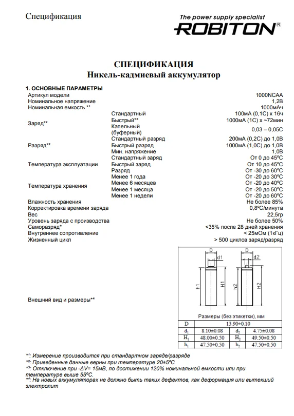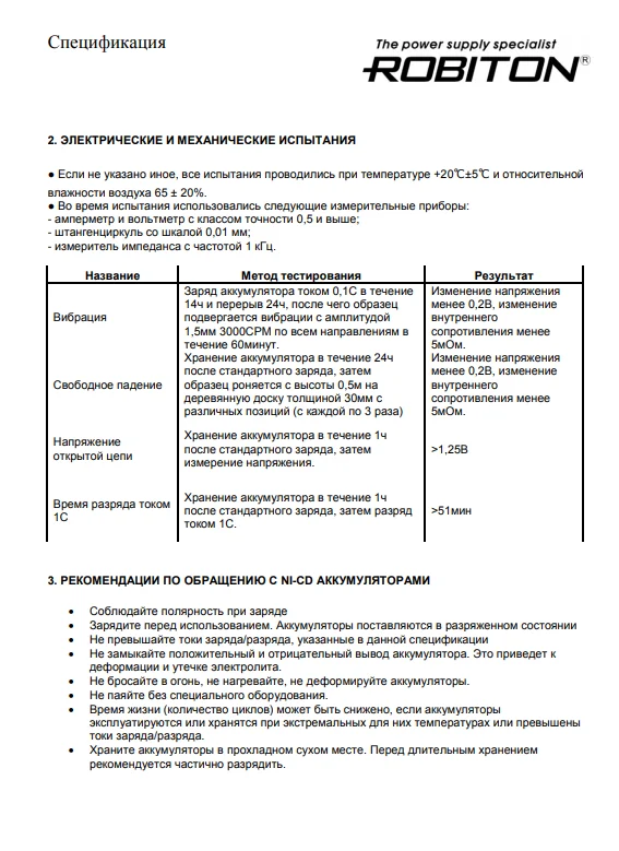 Аккумулятор ROBITON 1200NC (45А), NiCd 1.2 вольт 1200 мАч промышленные банки для сборкишуруповёрта 2 штуки в упаковке