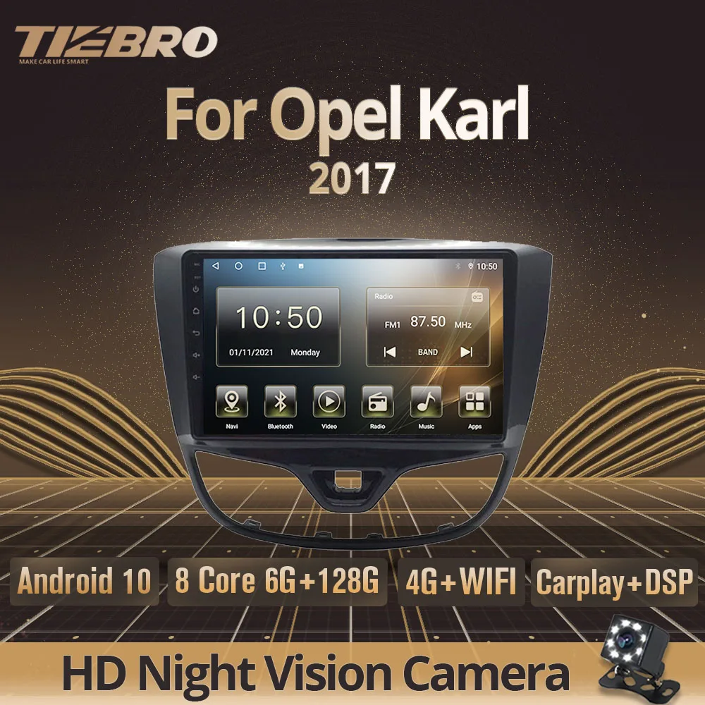 Автомагнитола Tiebro для Opel Карл 2017, 2DIN, Android, Автомобильный мультимедийный плеер, GPS-навигация, автомобильный радиоприемник с экраном и стереоприемником
