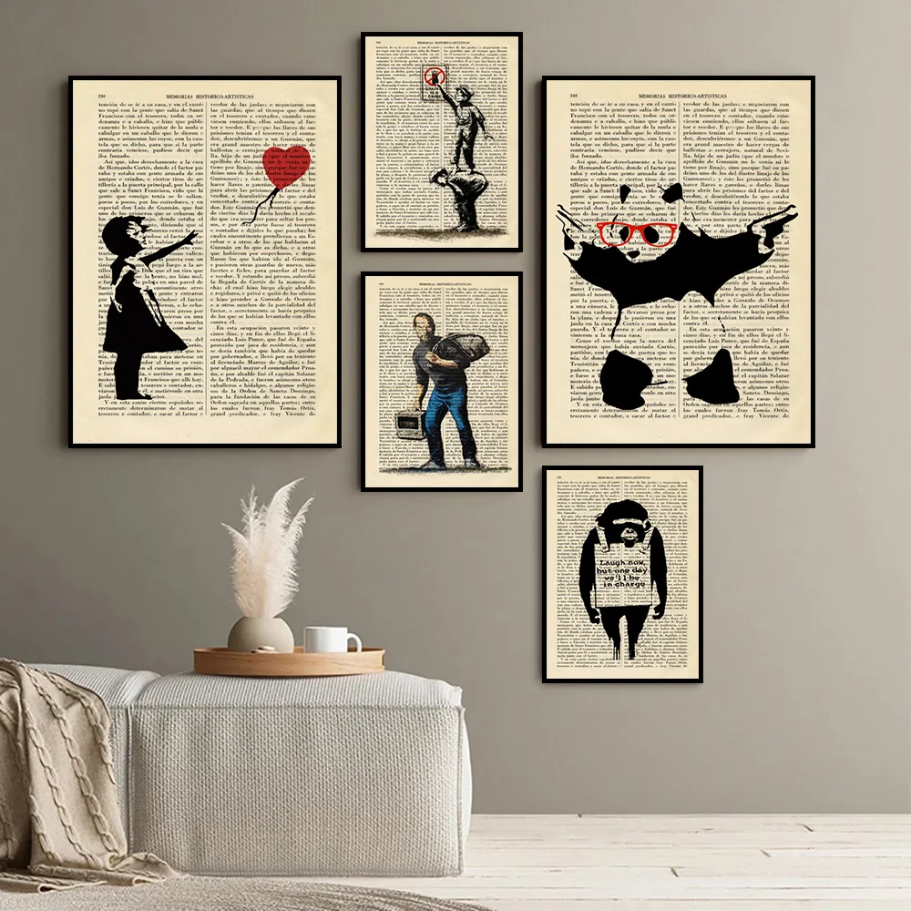 Граффити Бэнкси, декоративная роспись, Ретро плакат, холст, живопись и гостиная, настенные художественные принты для современного домашнего декора