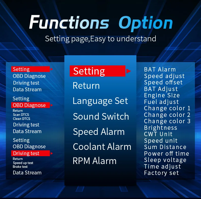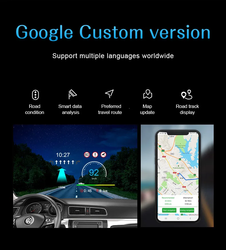 Особенности: 100% совместимость OBD + GPS Двойная система HD дисплей, нет двойного изображения, четкий эффект в дневное время Металлическая нанотехнология на лицевой стороне для удаления нежелательных отражений для более четкого отображения OBD + GPS 2 в 1 двойная рабочая система, которая может работать на всех транспортных средствах. Посылка включает в себя: