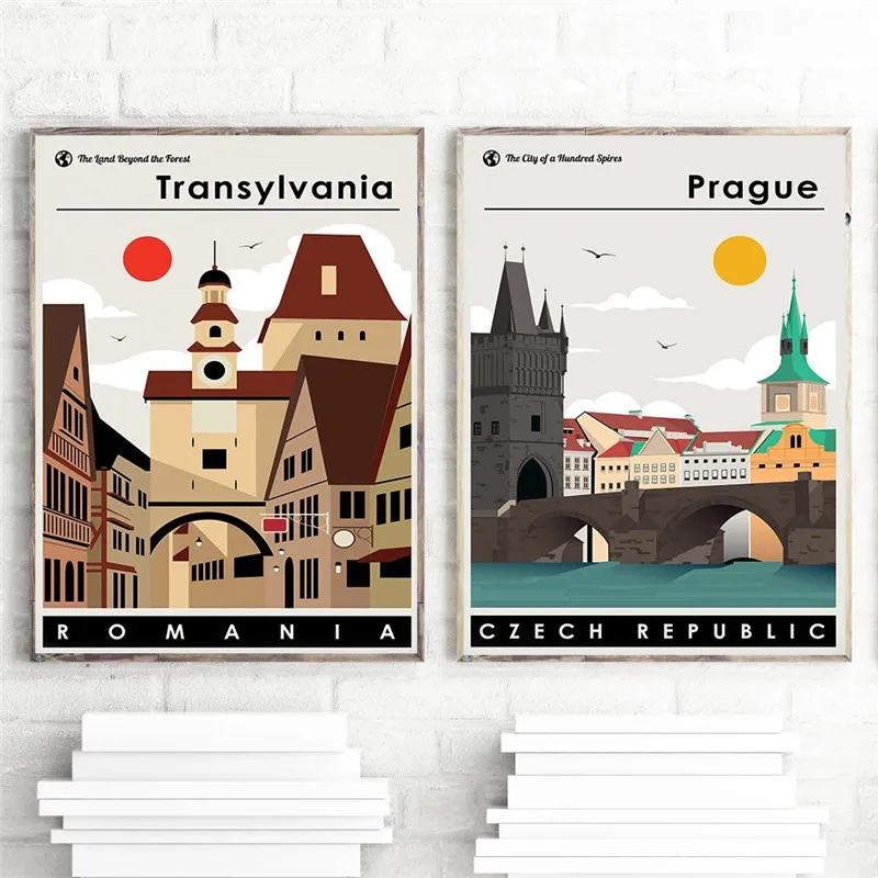 Дорожные города, ландшафтный постер, искусство на стену в стиле стокси, Брюгге, Багдаде, Праги, картины для интерьера, домашний декор