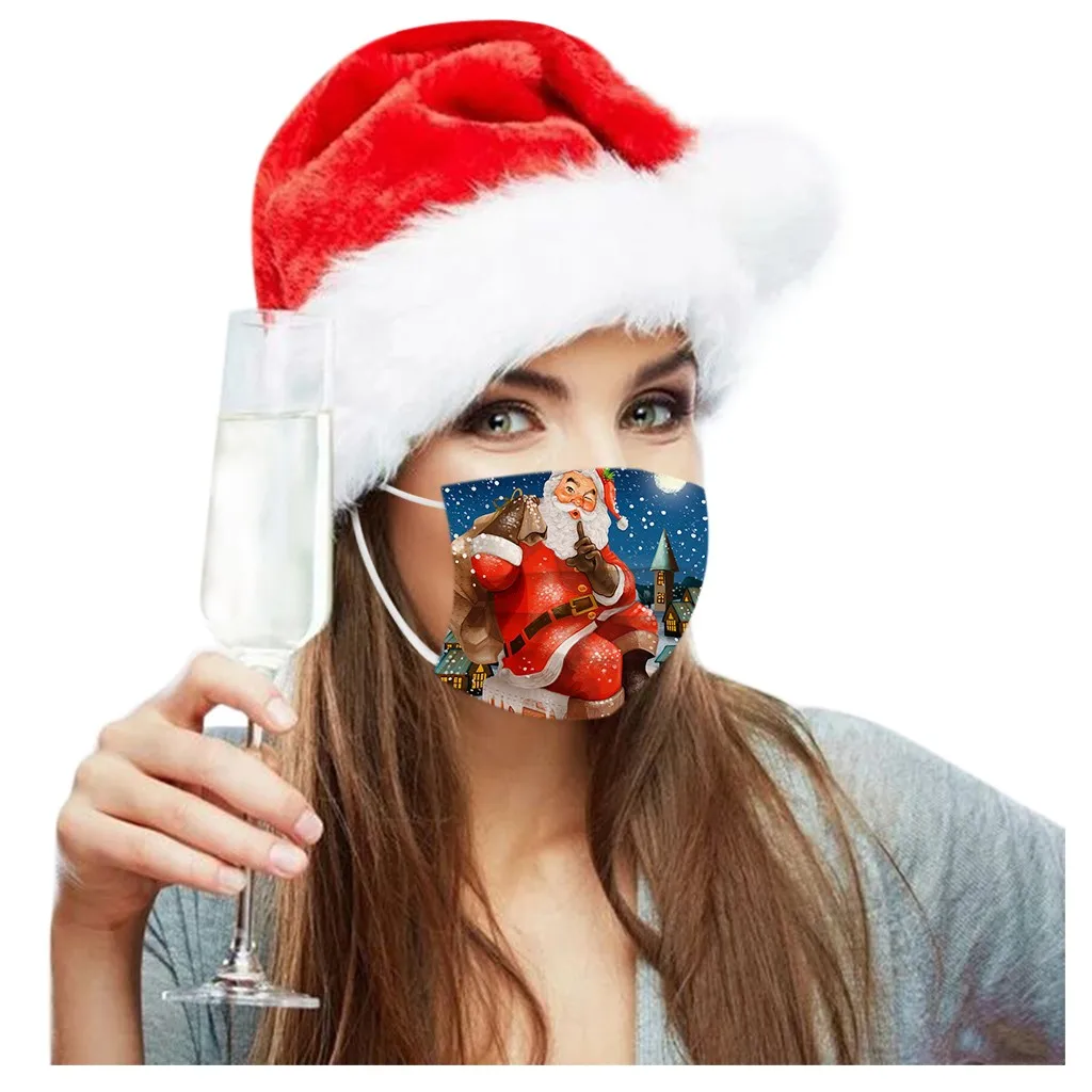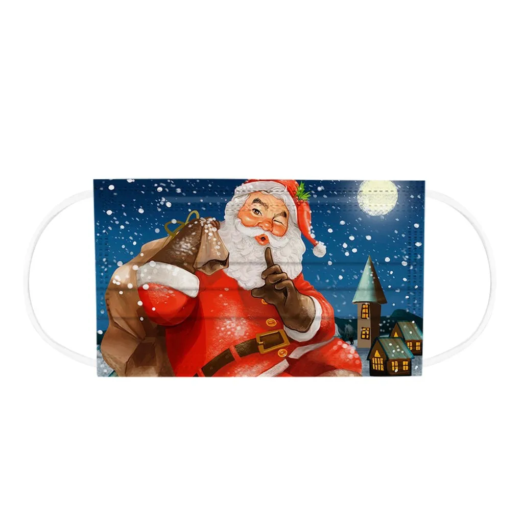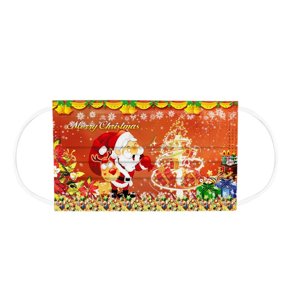 Маска с рождественским принтом для взрослых, 10 шт., Одноразовые Высококачественные маски, промышленные 3-слойные маски с Ушными крючками, рождественские маски с ушными петлями