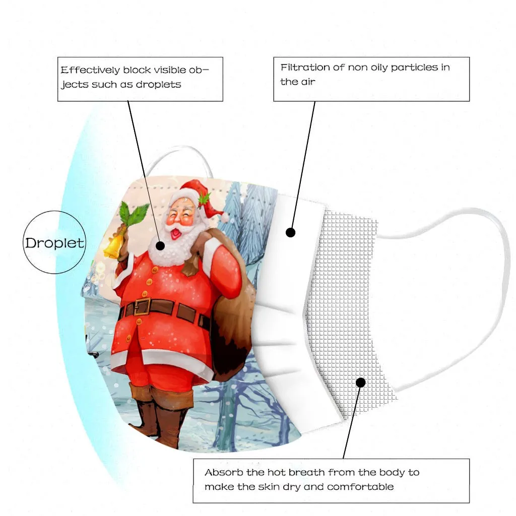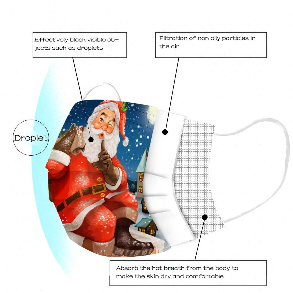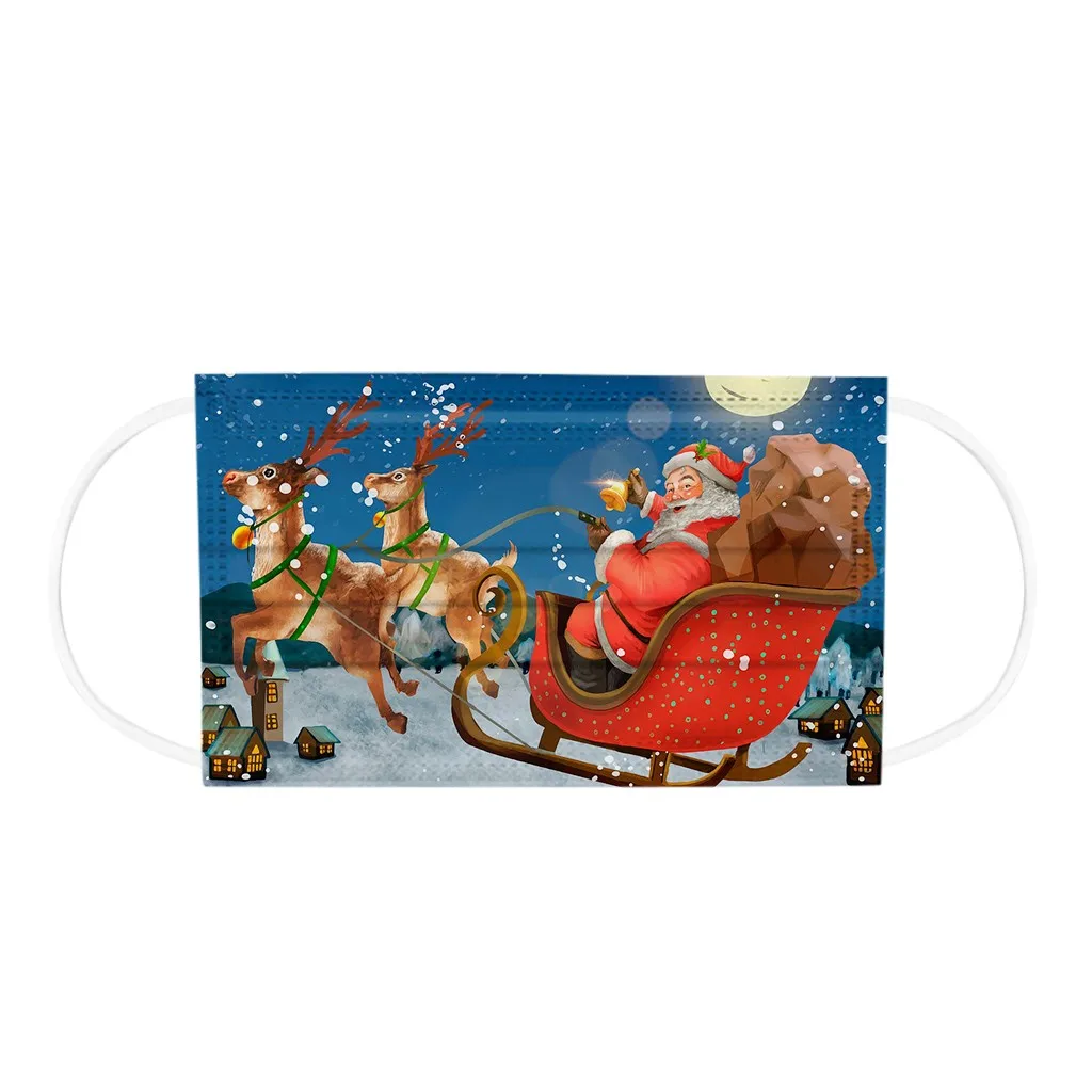 Маска с рождественским принтом для взрослых, 10 шт., Одноразовые Высококачественные маски, промышленные 3-слойные маски с Ушными крючками, рождественские маски с ушными петлями