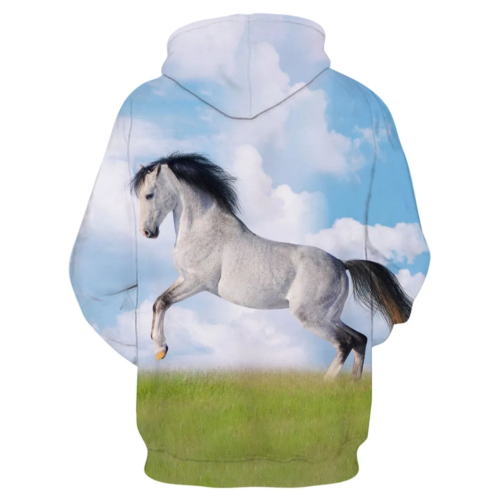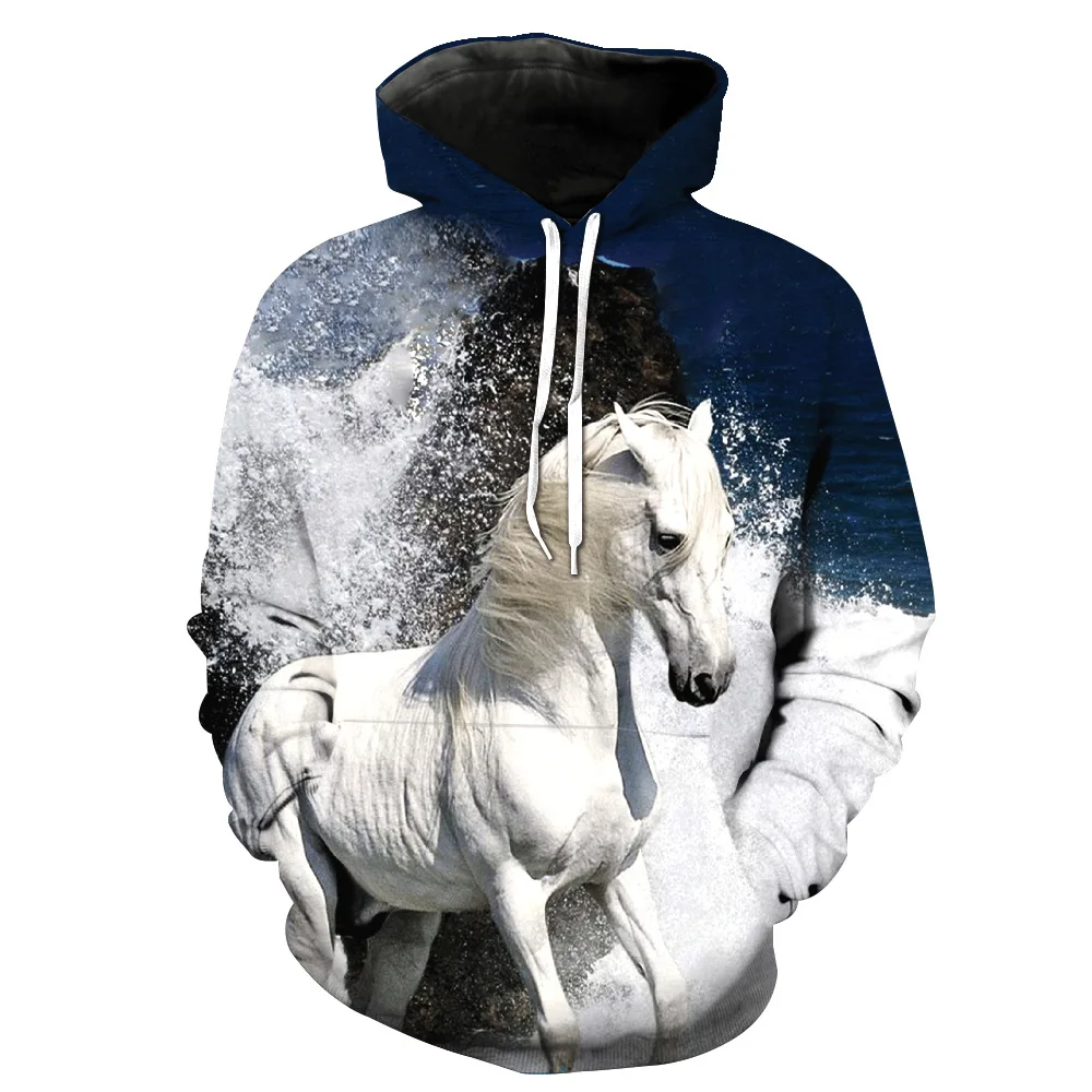 Мужская толстовка с капюшоном, Осень-зима 2021, с 3D-принтом в виде белой лошади, пуловер, уличное пальто с длинным рукавом и капюшоном