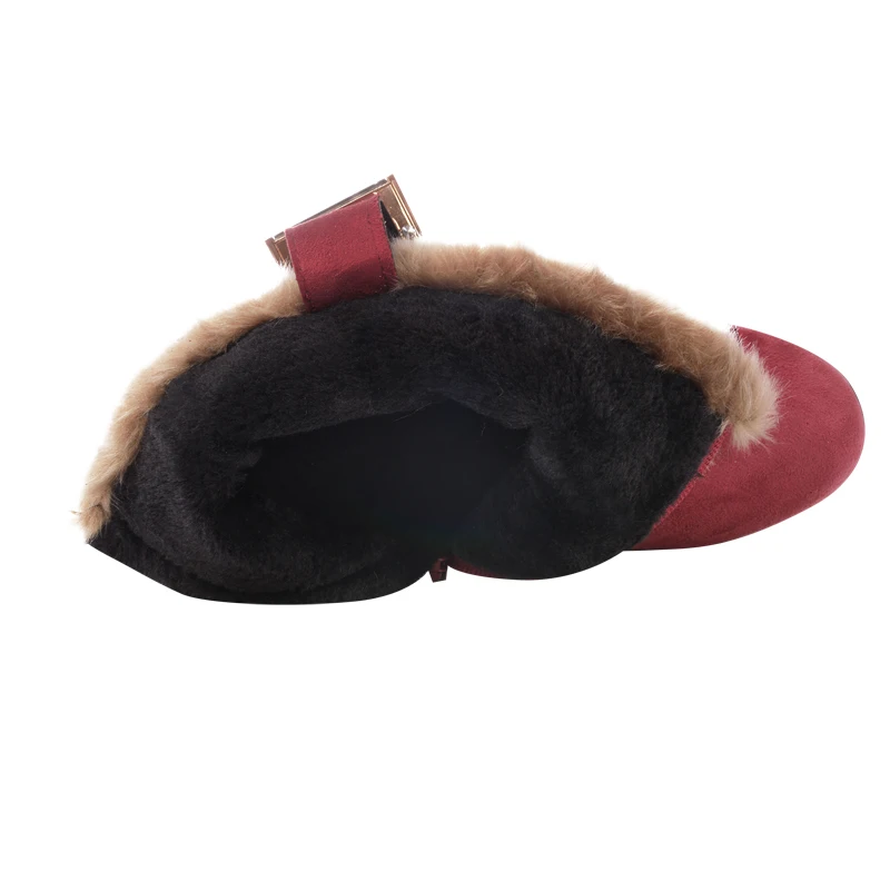 Женские классические зимние ботинки на квадратном каблуке, Черные Теплые ботильоны на платформе и высоком каблуке с меховой пряжкой