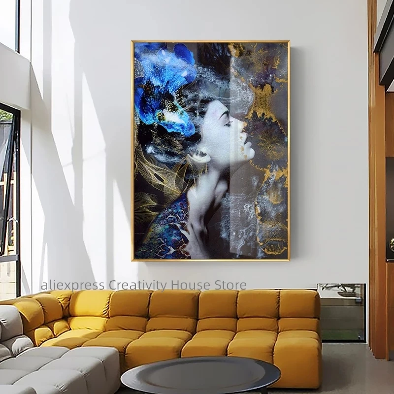 Абстрактная синяя Цветочная Женская Картина на холсте настенные художественные картины на современной художественной фигуре плакаты и принты декоративные для Домашнего Дизайна