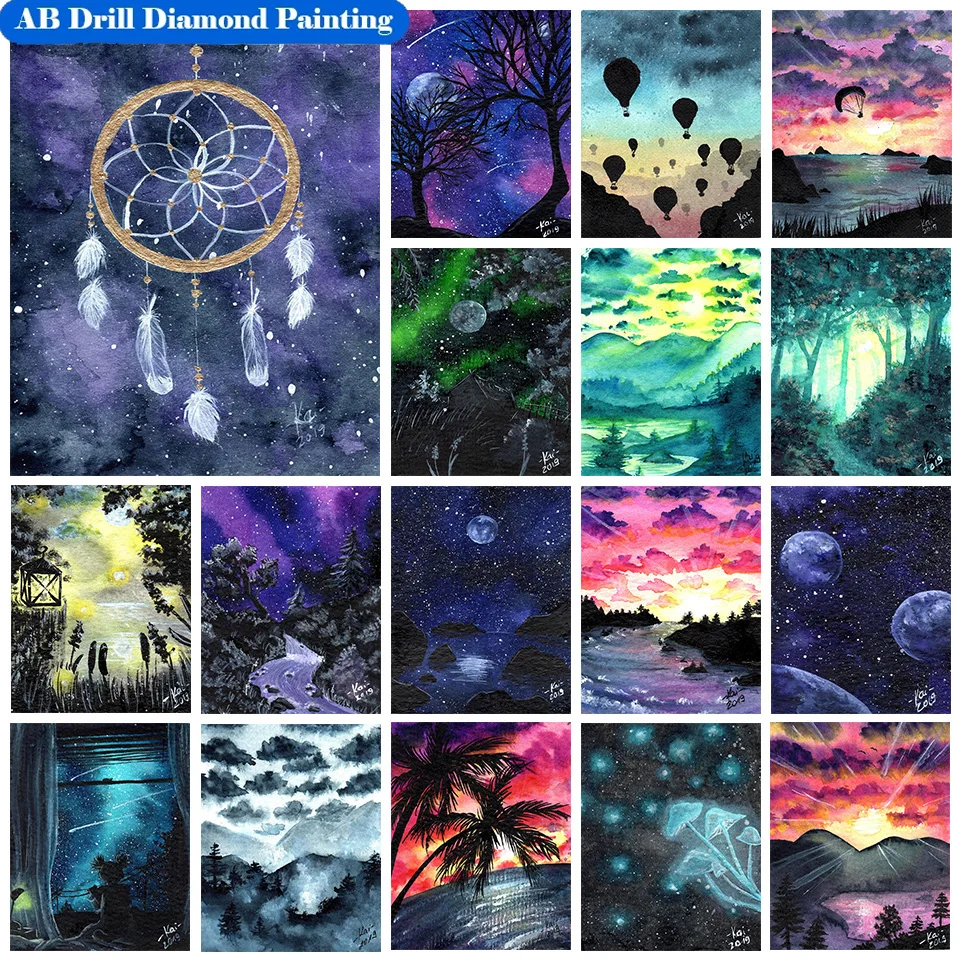Алмазная вышивка AB закат пейзаж полный квадраткруглый 5D DIY алмаз...