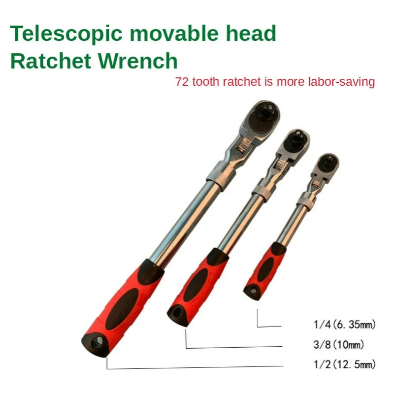 Телескопический гаечный ключ с храповым механизмом, 72 зубца, автоматический быстросъемный быстрый, 14, 12, 38, регулируемый, 90 градусов, ручной гаечный ключ с храповым механизмом