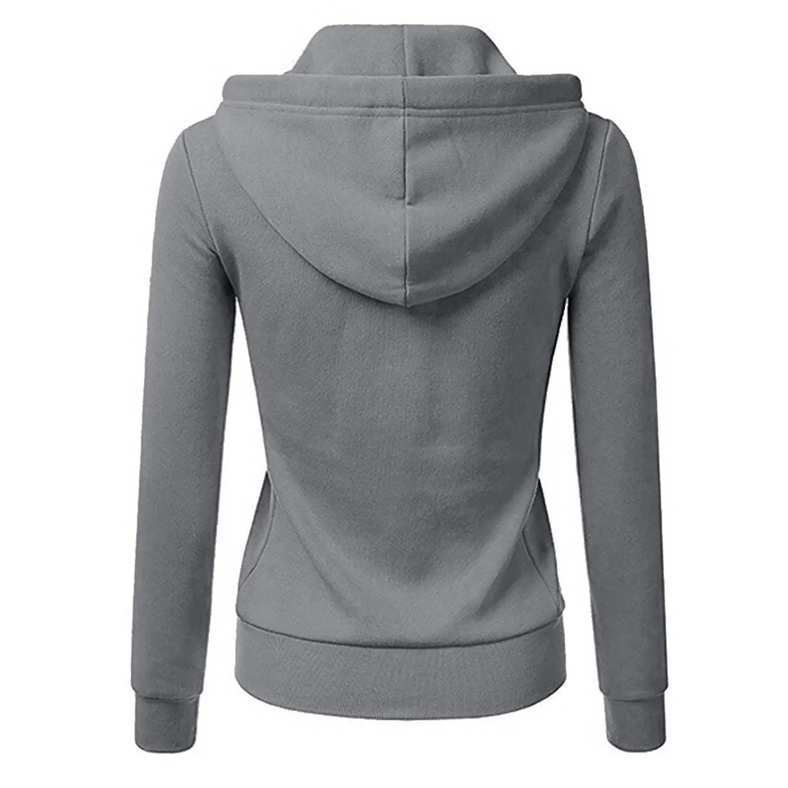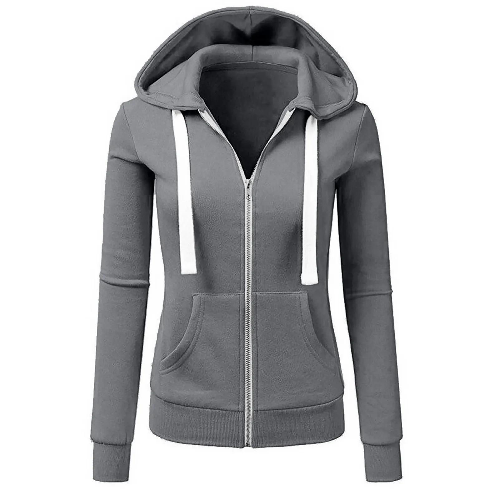 Однотонный спортивный свитшот с капюшоном, Женская куртка на молнии, свитшот с передним карманом и кулиской, толстовки с длинным рукавом, пальто, женская толстовка