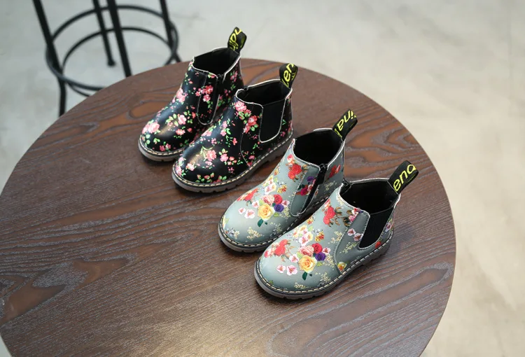 Ботинки детские кожаные непромокаемые, с цветочным принтом, Несколь...