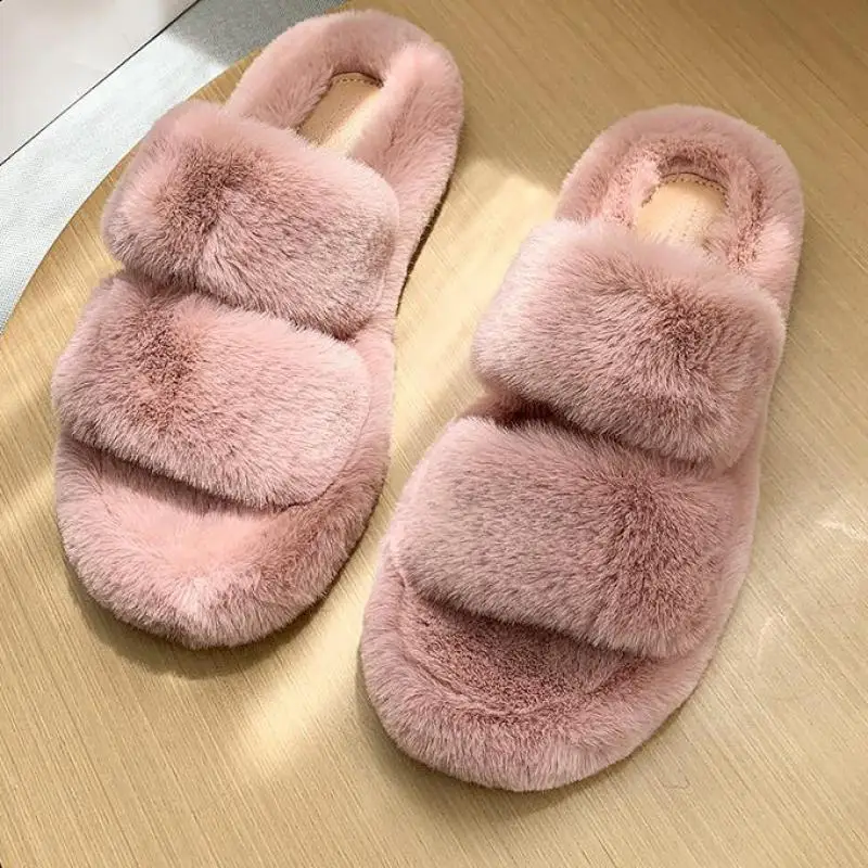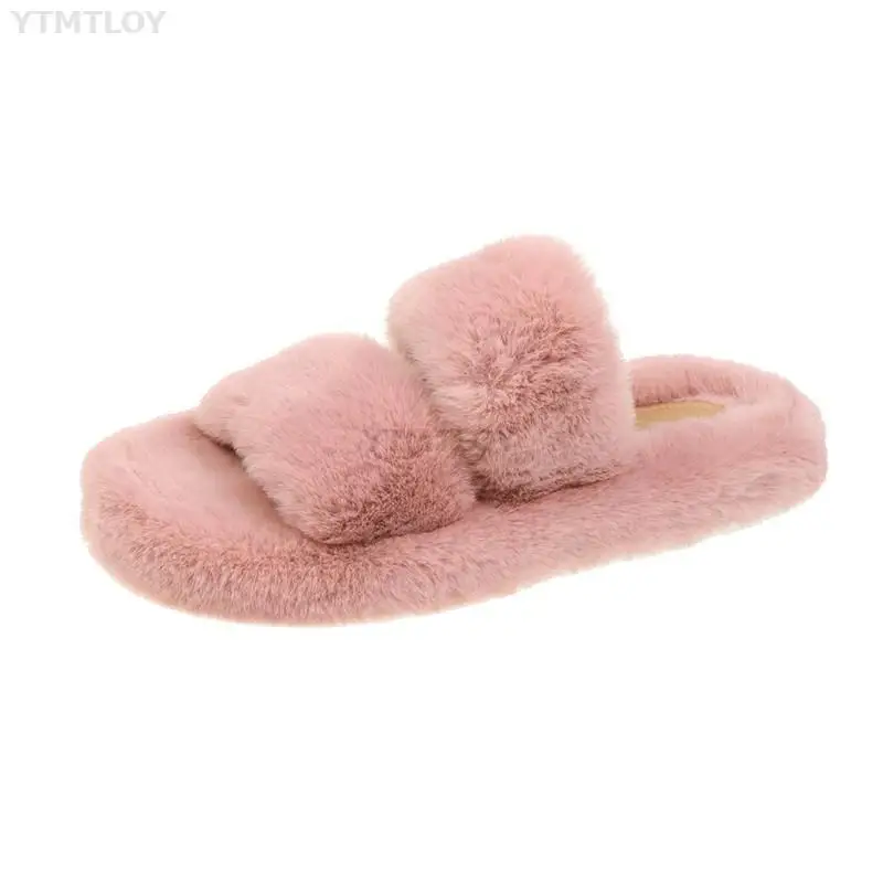 2022 зимние модные мягкие теплые удобные плоские меховые тапочки бр...
