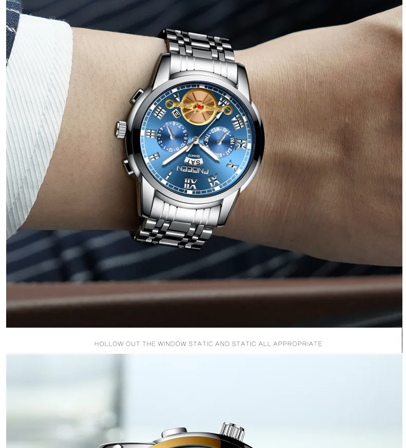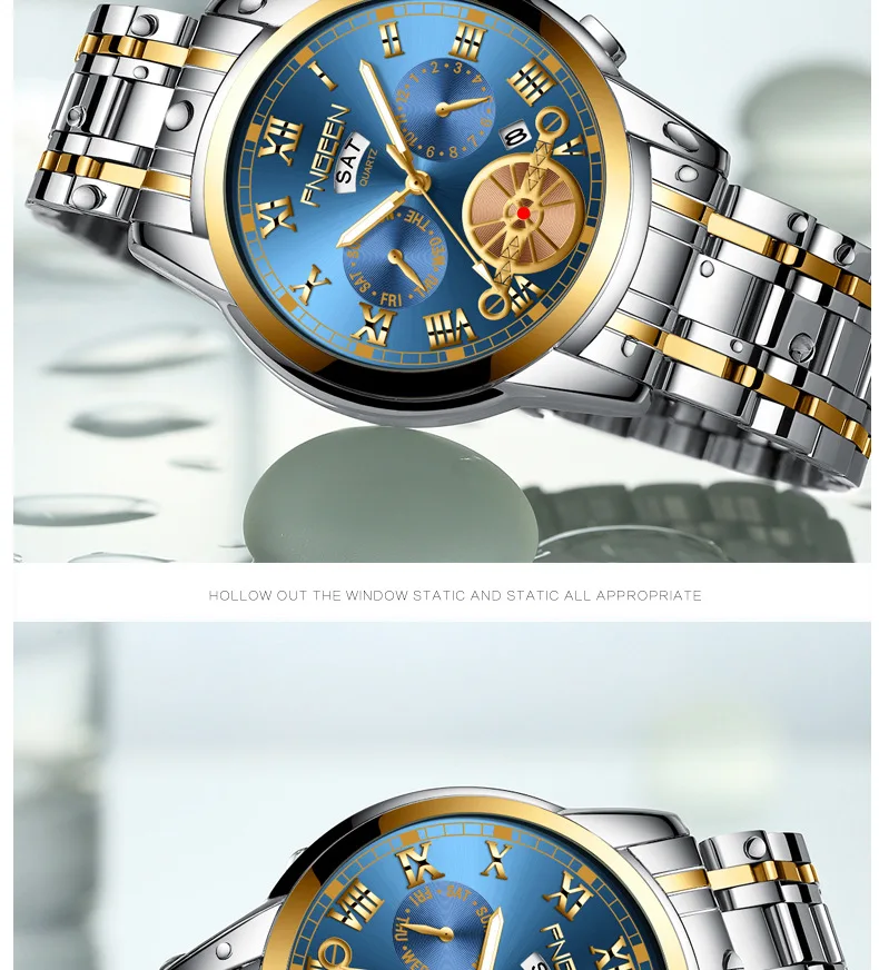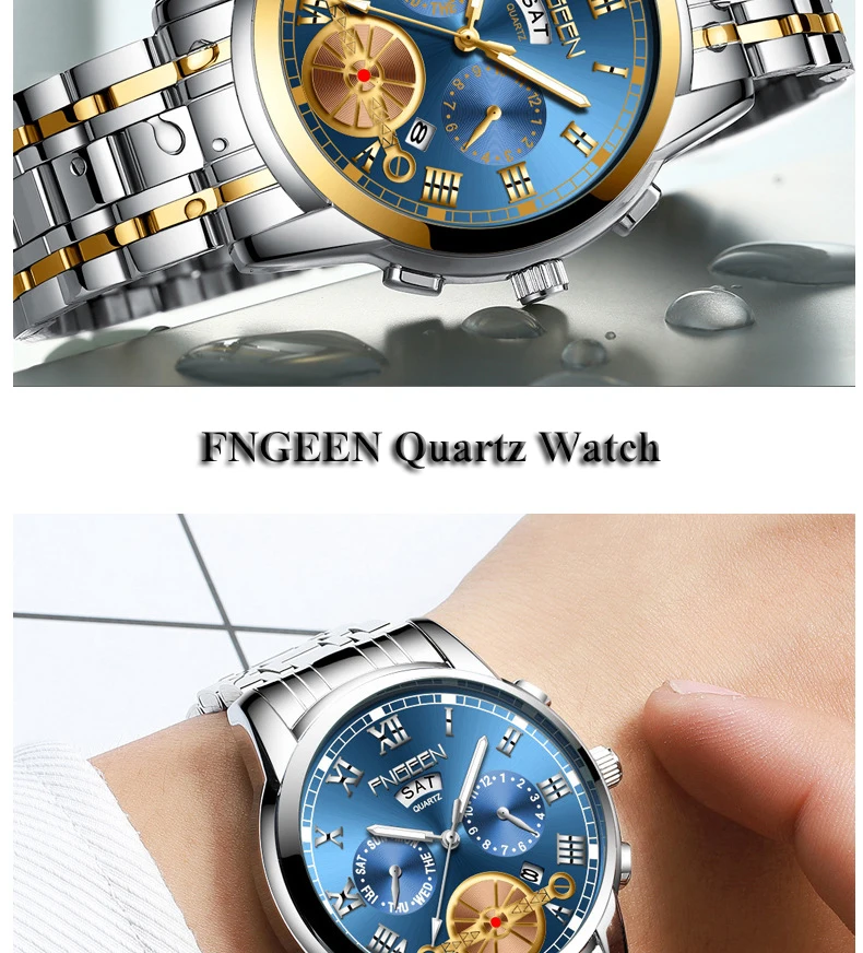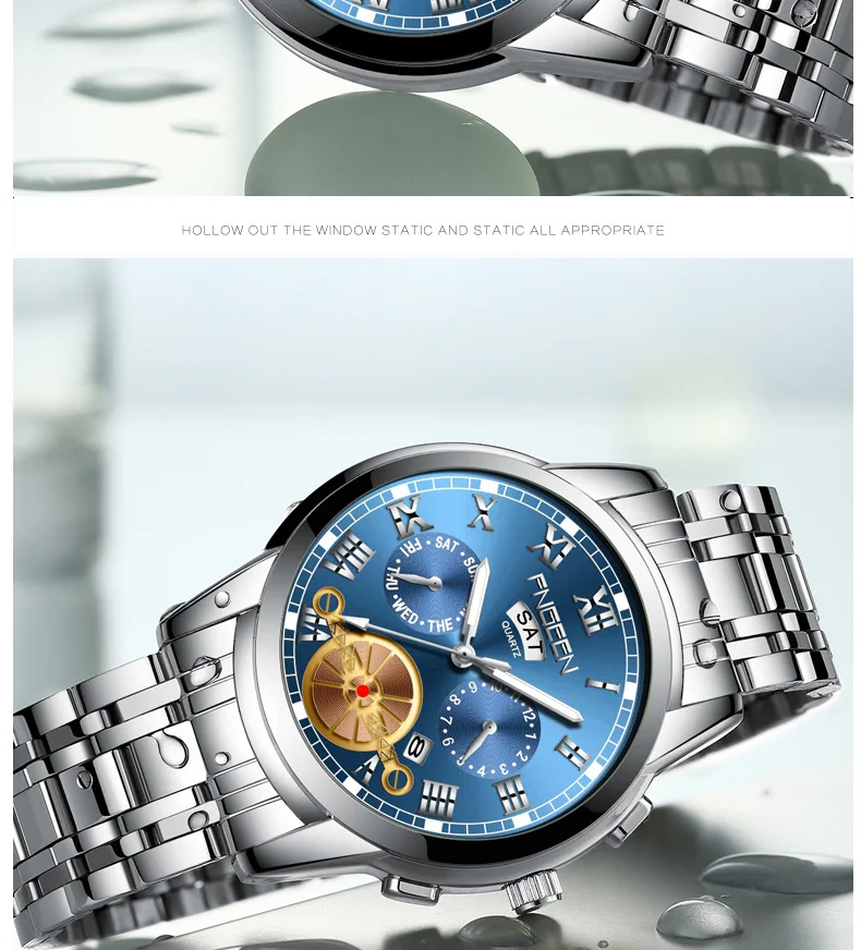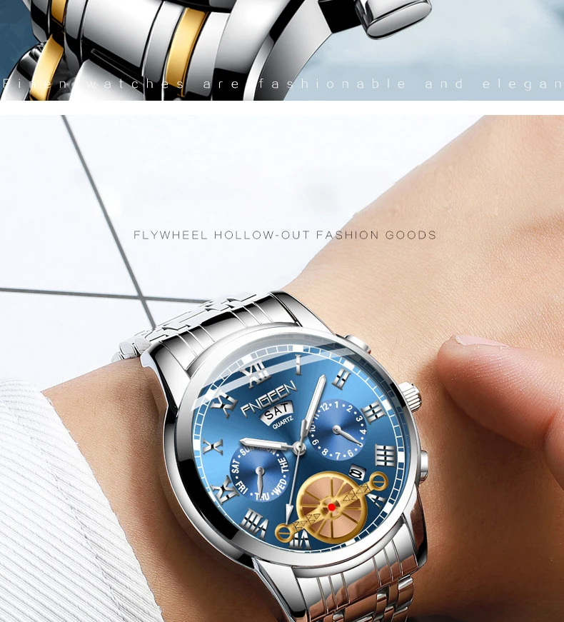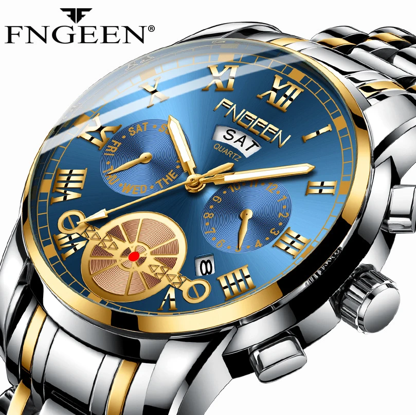 FNGEEN модные мужские часы кварцевые классические синие наручные часы на стальном ремешке Роскошные деловые часы с календарем Herren Uhren подарки для мужчин