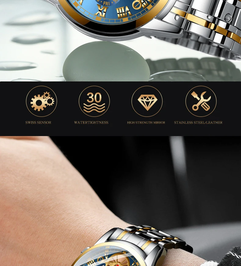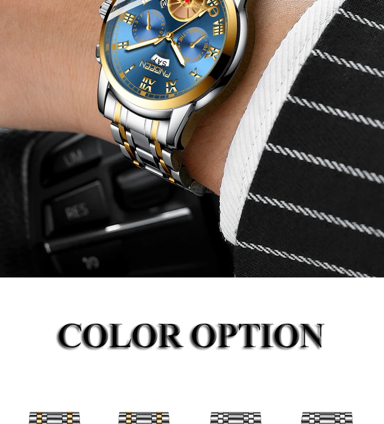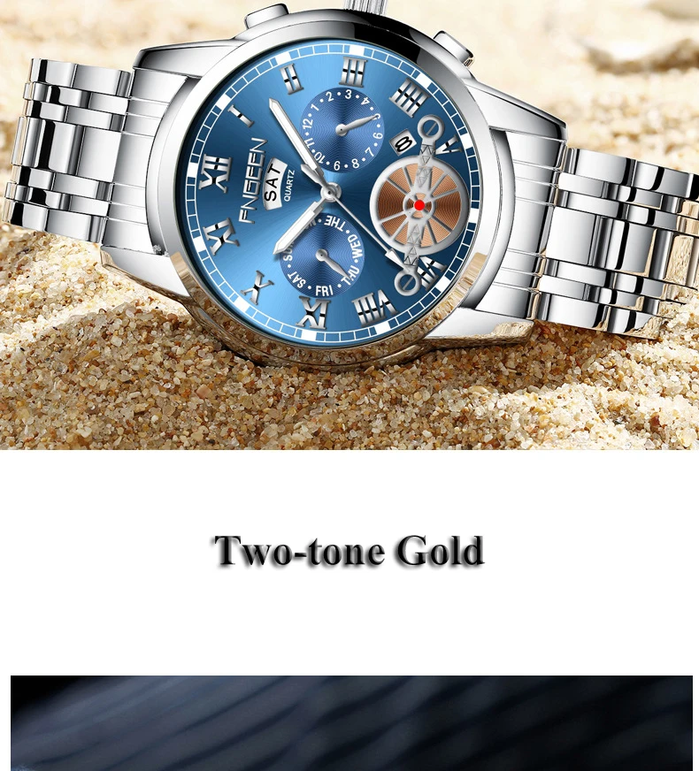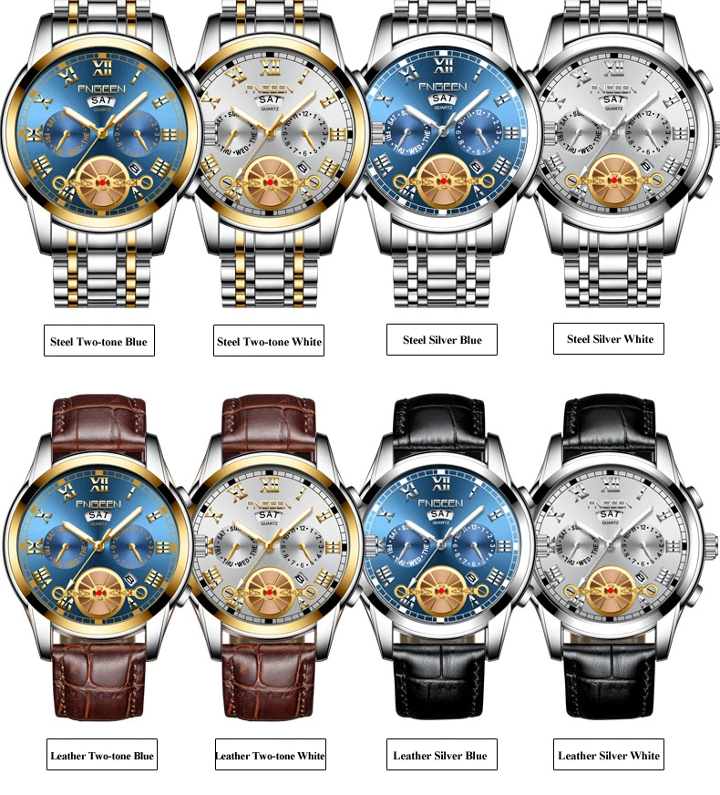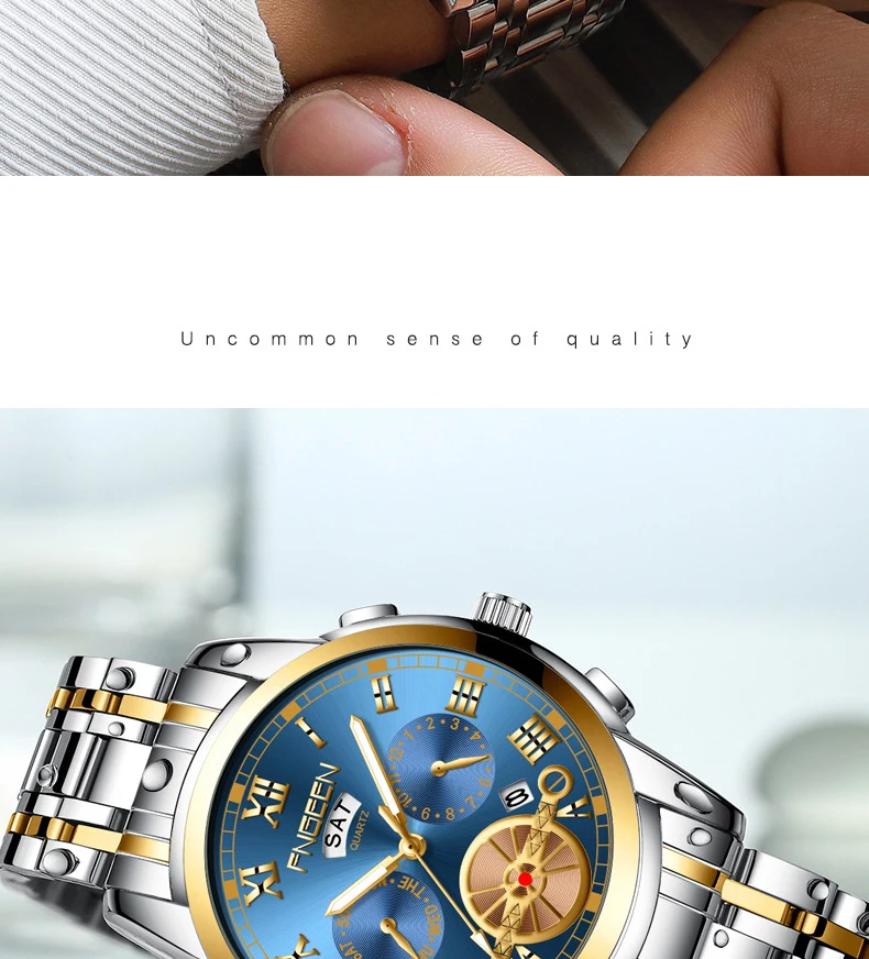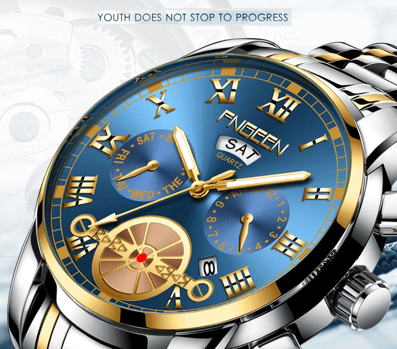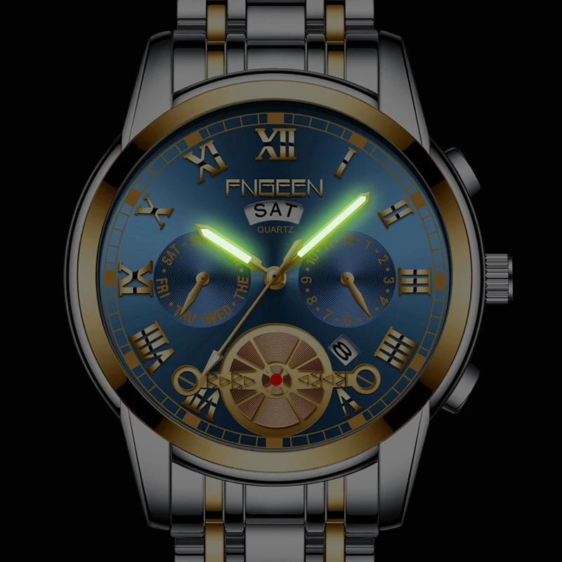 FNGEEN модные мужские часы кварцевые классические синие наручные часы на стальном ремешке Роскошные деловые часы с календарем Herren Uhren подарки для мужчин