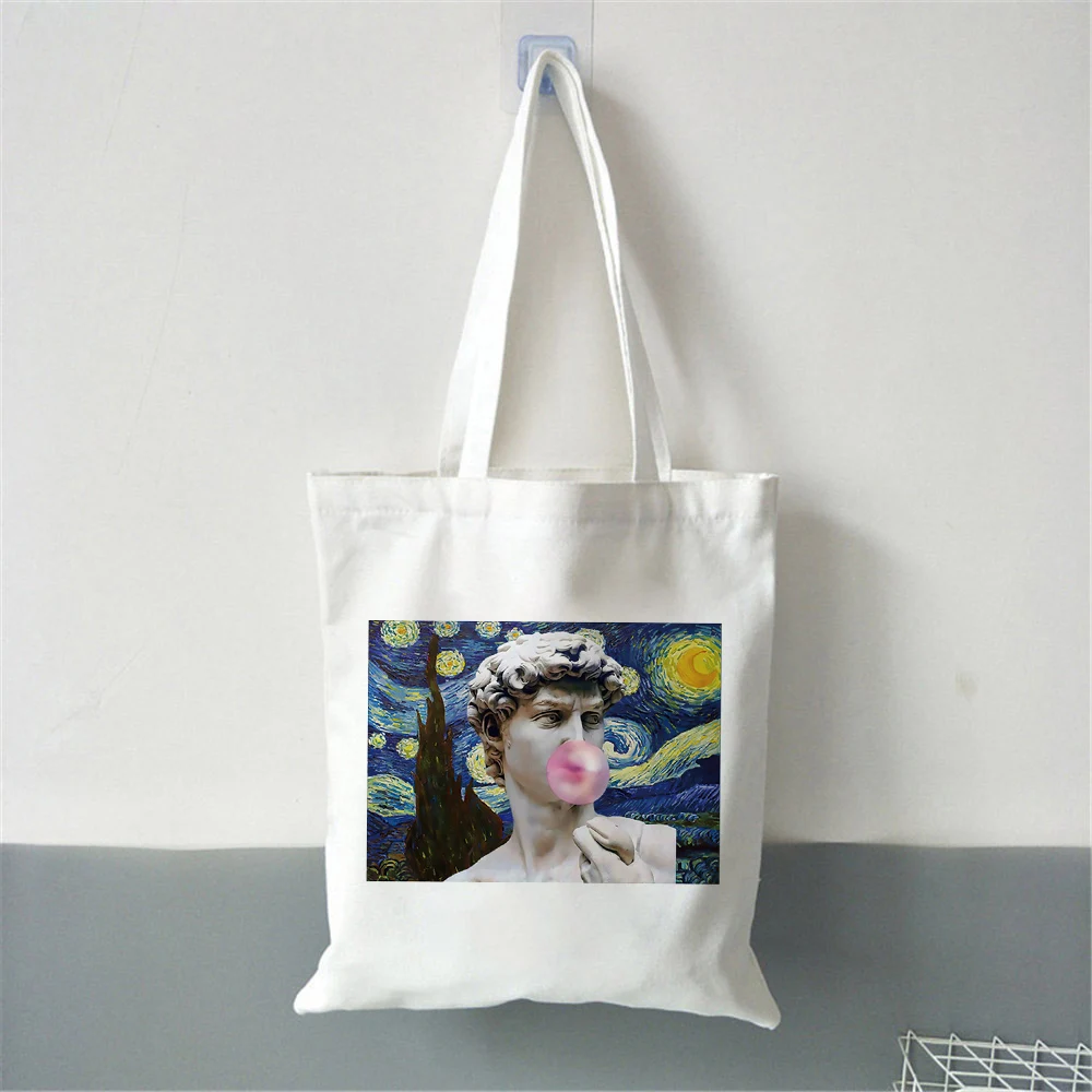 Креативная Сумка-тоут с масляной живописью, большие тканевые сумки для покупок, модные милые многоразовые сумки в стиле Харадзюку, складная многоразовая сумка