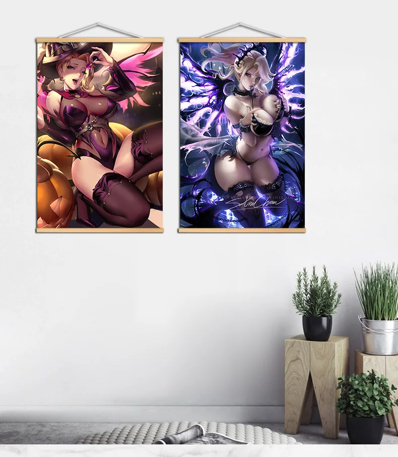 Настенный постер из массива дерева, для Overwatch, Постер в стиле аниме, Декор для дома, косплей, манга, Свиток, Картина на холсте