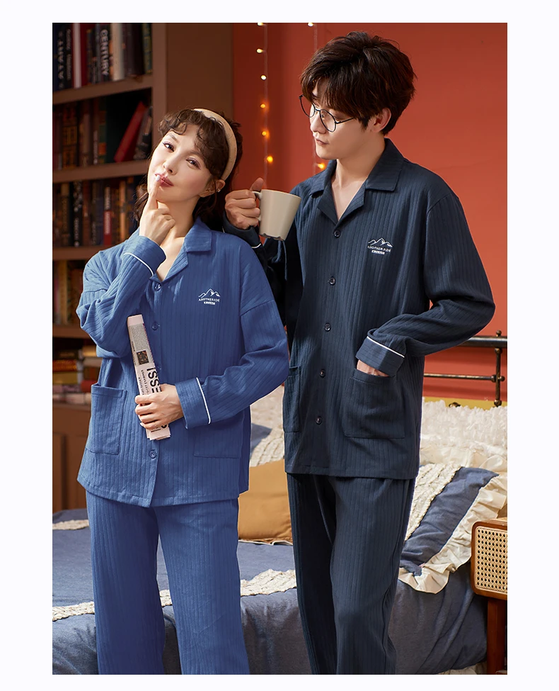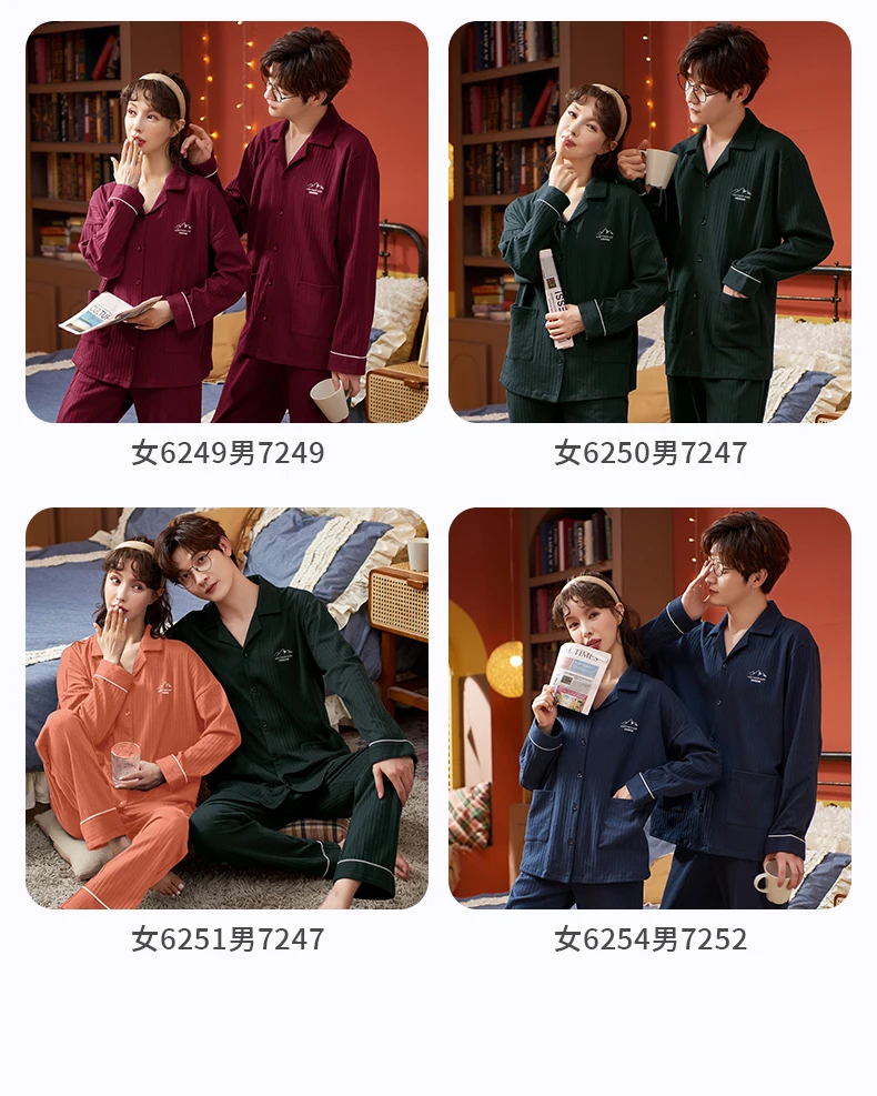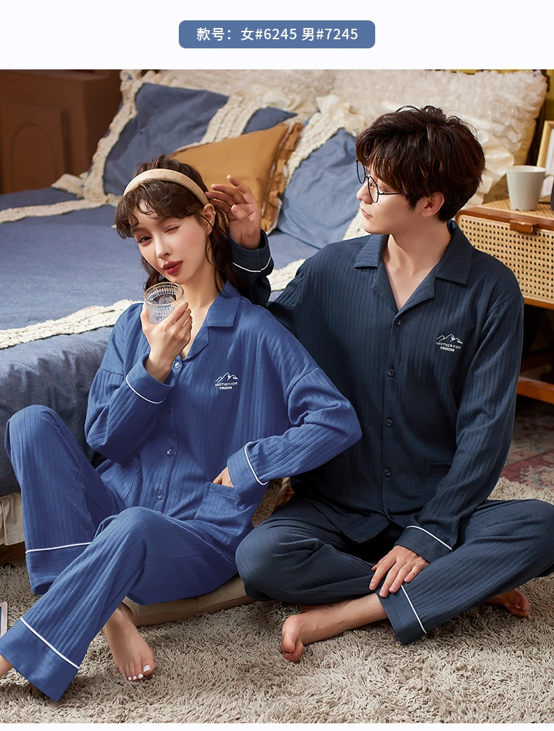 Осенняя Пижама для пар для мужчин и женщин, хлопковая ночная рубашк...
