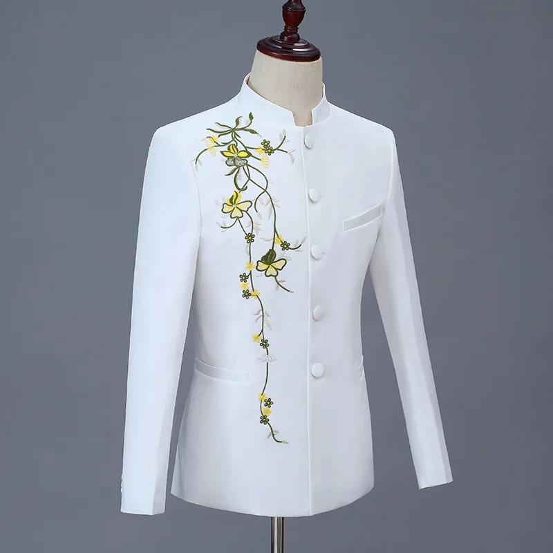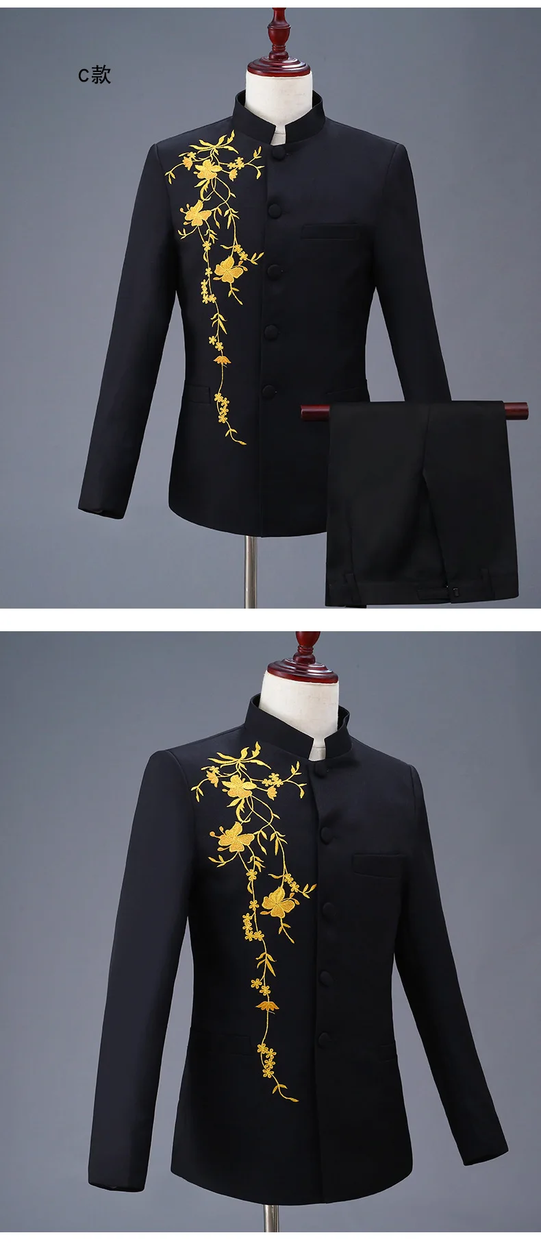 Комплект из двух предметов, пиджак и брюки, модный мужской повседневный бутик 2022, индивидуальный принт, стоячий воротник, китайская туника, блейзеры