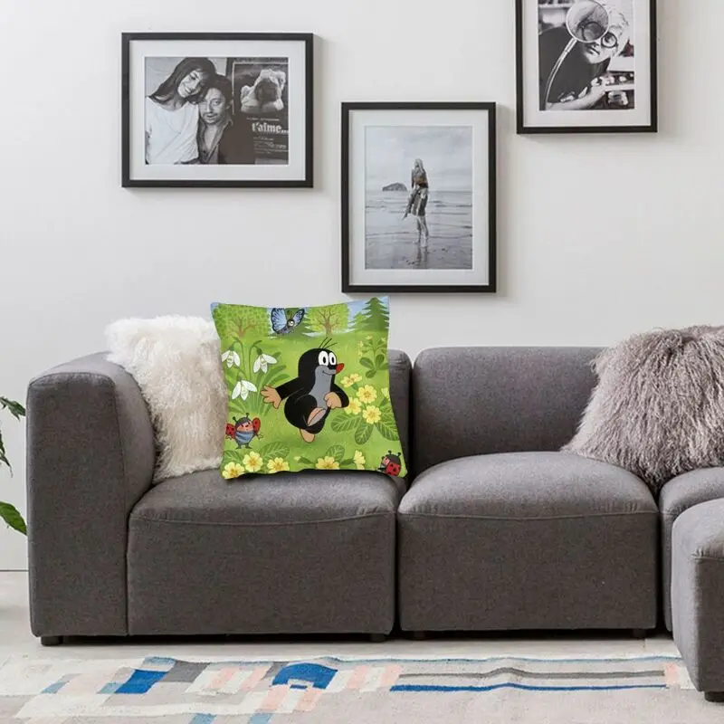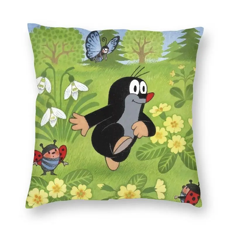 Милые наволочки с изображением счастливого крота Krtek, 45x45 см, мультяшная Маленькая подушка, декоративная квадратная наволочка для автомобиля, спальни
