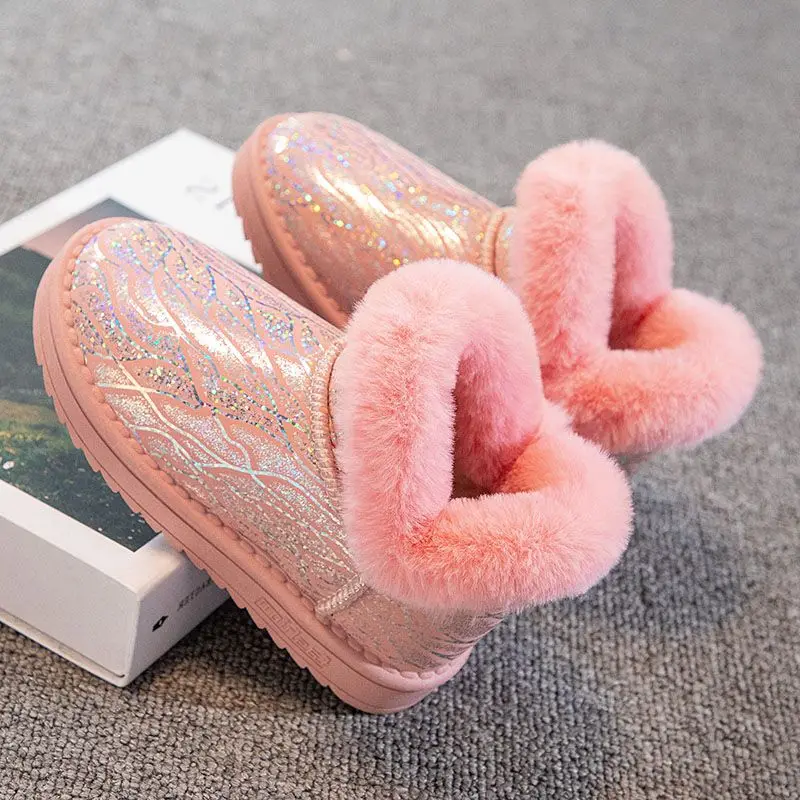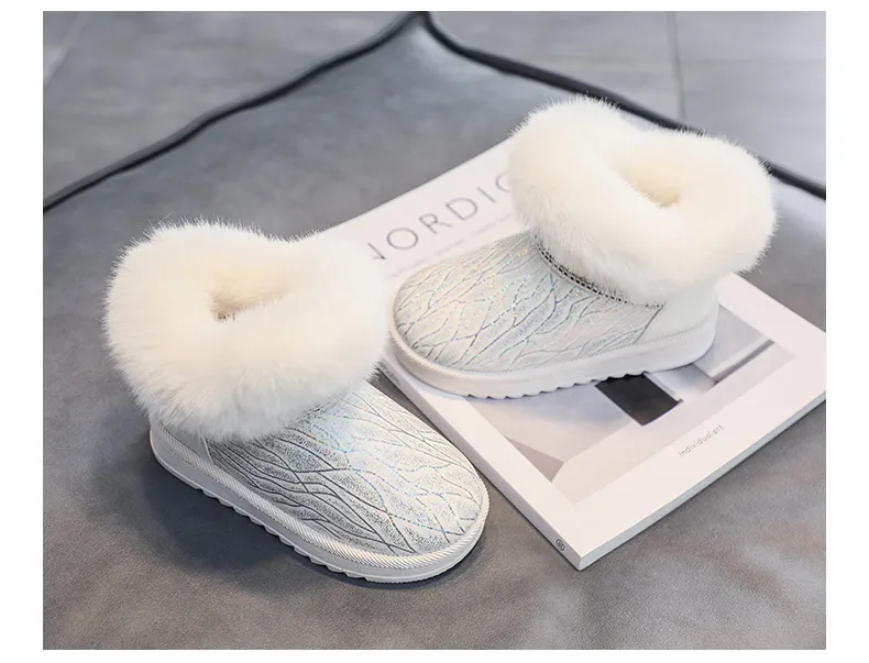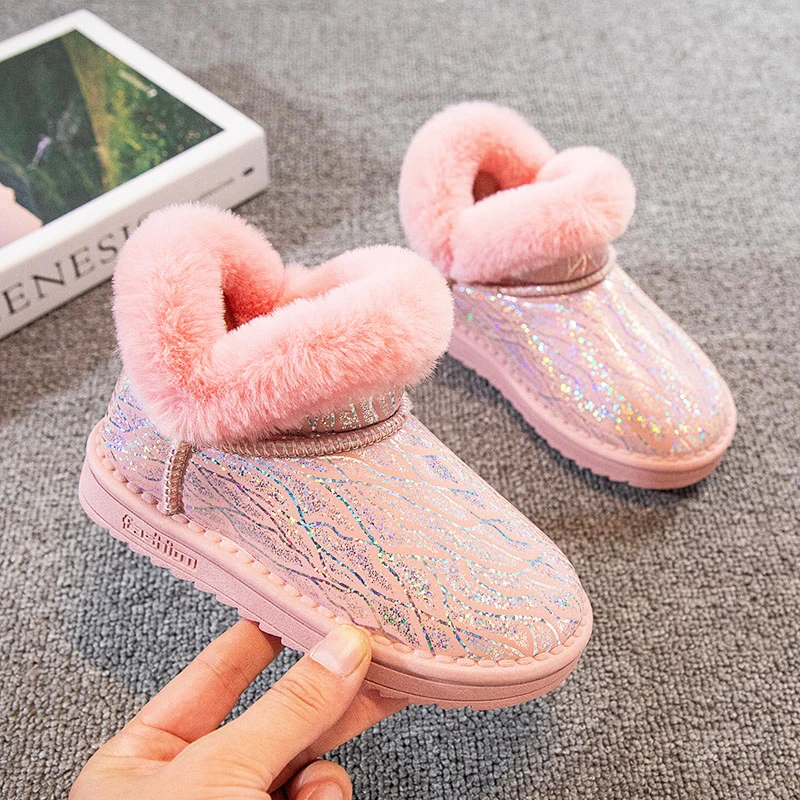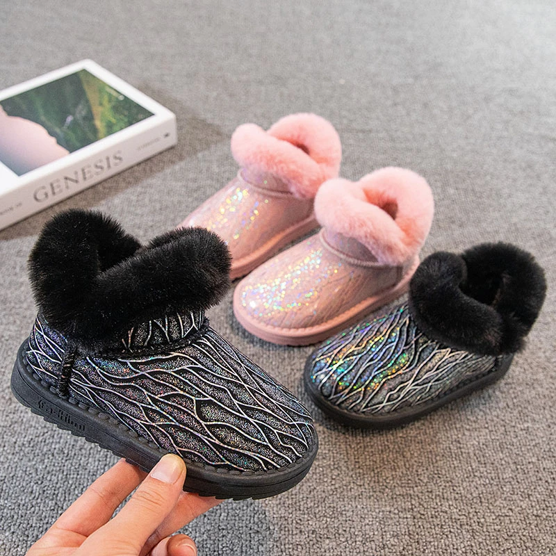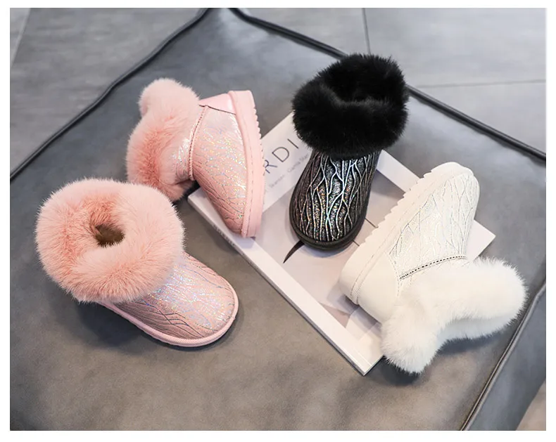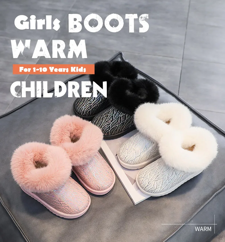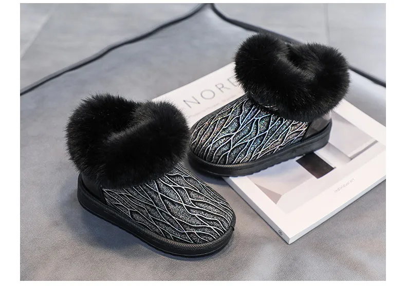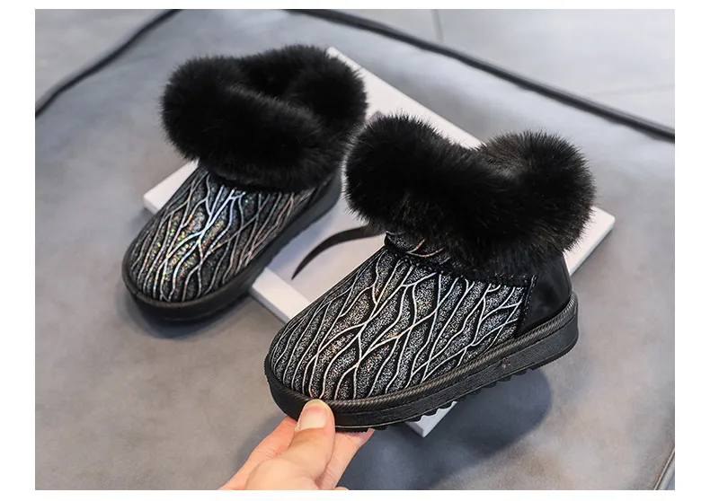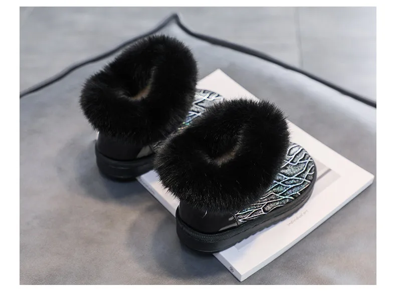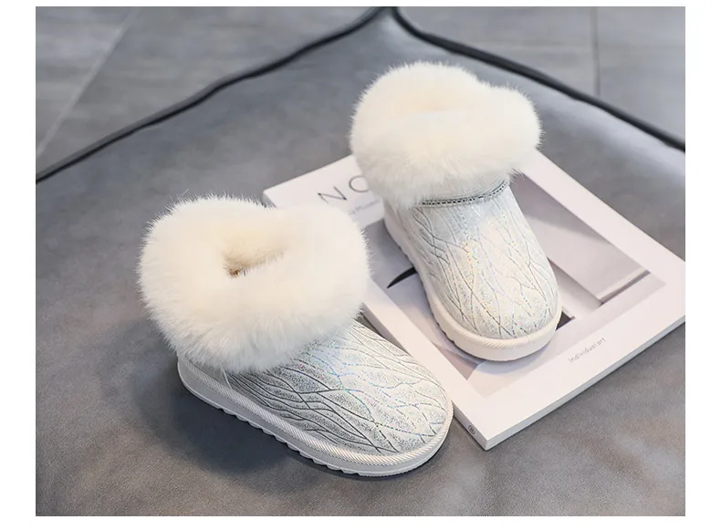 Зимние детские ботинки для девочек, теплая плюшевая детская обувь, модная кожаная детская обувь, Размеры 19-36 #