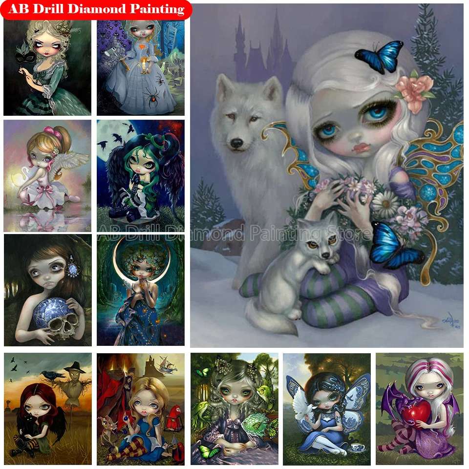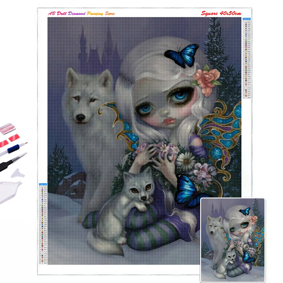 Алмазная живопись 5D с изображением ангела Девушки AB, животные, волк, Бабочка, алмазная вышивка, цветок, Алмазная мозаика, домашний декор, подарки