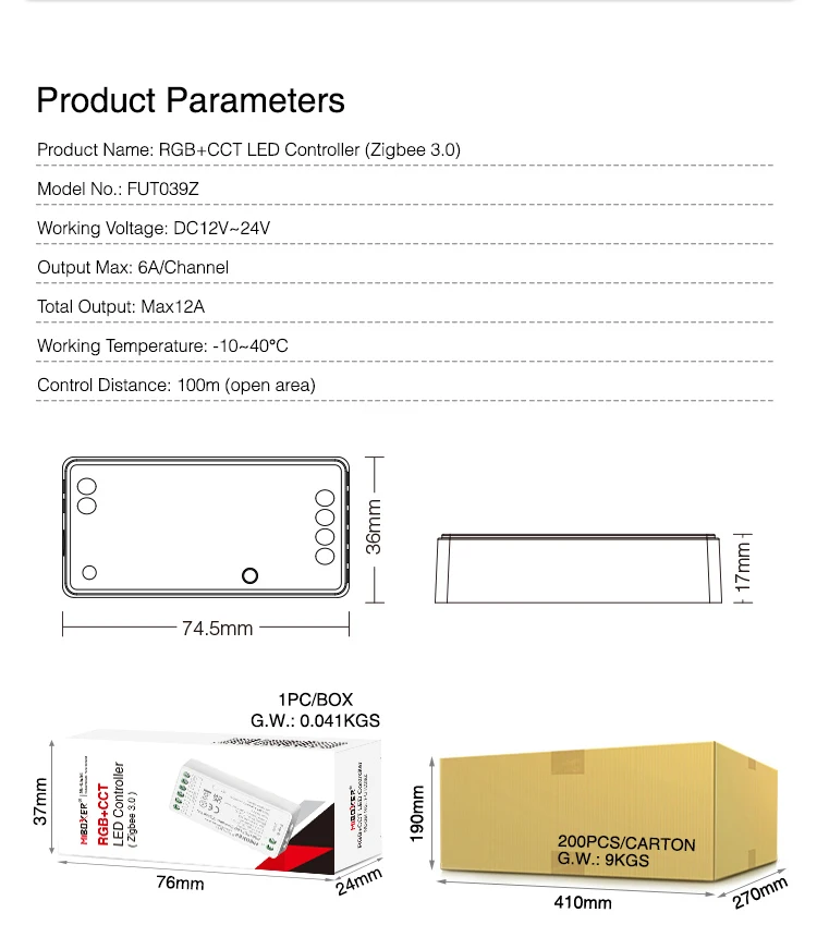 Название продукта: RGB + CCT Светодиодный контроллер (Zigbee 3,0)