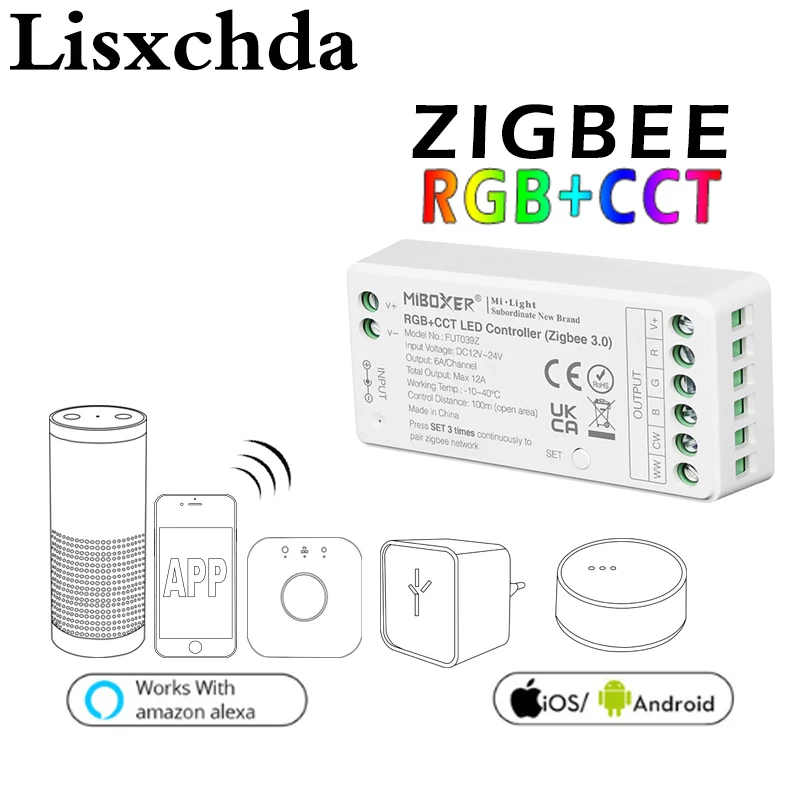 MiBox DC12-24V RGB + CCT Zigbee умная Светодиодная лента для управления голосом работа с Echo Plus SmartThings ZIGBEE 3,0 HUB