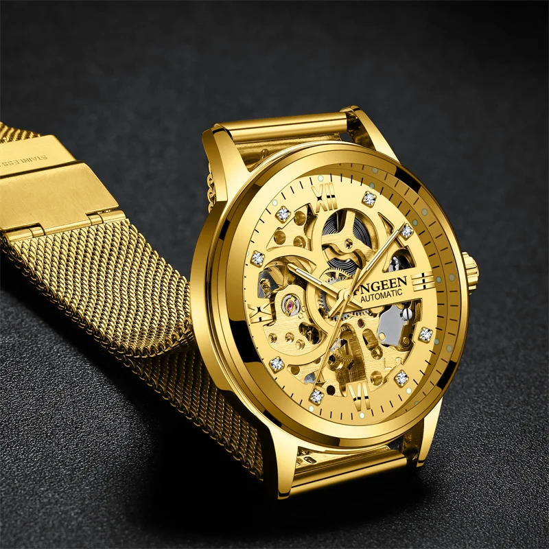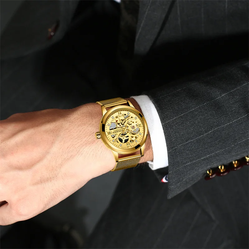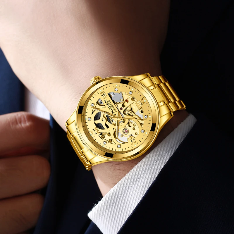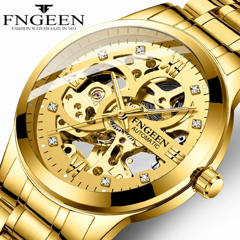Часы-скелетоны Мужские механические с автоподзаводом из нержавеющей стали, 6018