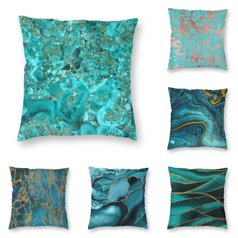 Мраморная Бирюзовая синяя Золотая наволочка для подушки украшение для гостиной современный чехол для подушки с абстрактным рисунком диванная подушка