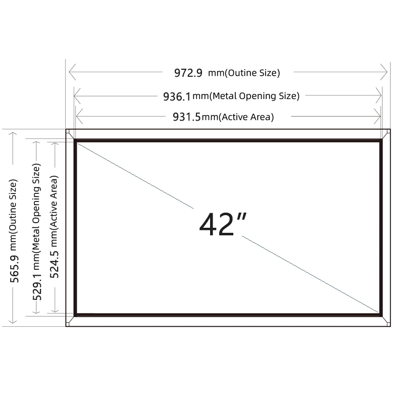 Инфракрасная сенсорная панельСенсорный экран IR-это сенсорная рамка, которая обычно устанавливается перед экраном дисплея. Рамка интегрирована с печатной платой, которая содержит линейку ИК-светодиодов и фототранзисторов Скрытый за рамкой сенсорной рамки. Каждый из ИК-светодиодов и фототранзисторов установлен на противоположных сторонах, чтобы создать сетку невидимого инфракрасного светильник. Рамка защищает части от операцииСупер преимущества для 42 дюймов 20 точек ИК мульти сенсорный экран:20 точек касания (мульти касание)Поддержка увеличения/уменьшения, вращение дисплеяUSB интерфейс, привод бесплатно, подключи и работайПоддержка 10 точек касания под Windows7, Windows8,Windows10 и системой AndroidПоддержка системы Windows XP, Linux и MacOSВыдерживает сильные погодные условияСтабильная калибровка без дрейфаАнтивандальные и износостойкие экраны, идеально подходят для прочных примененийПараллакс-отсутствие производительности для ЖК-дисплеевГерметичный против загрязняющих веществРаботает в различных условиях светильник, крытый и открытый