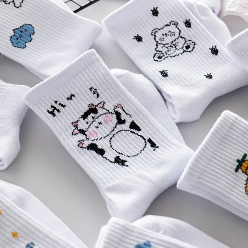 Носки женские с мультяшным рисунком, уличная одежда, хлопковые милы...