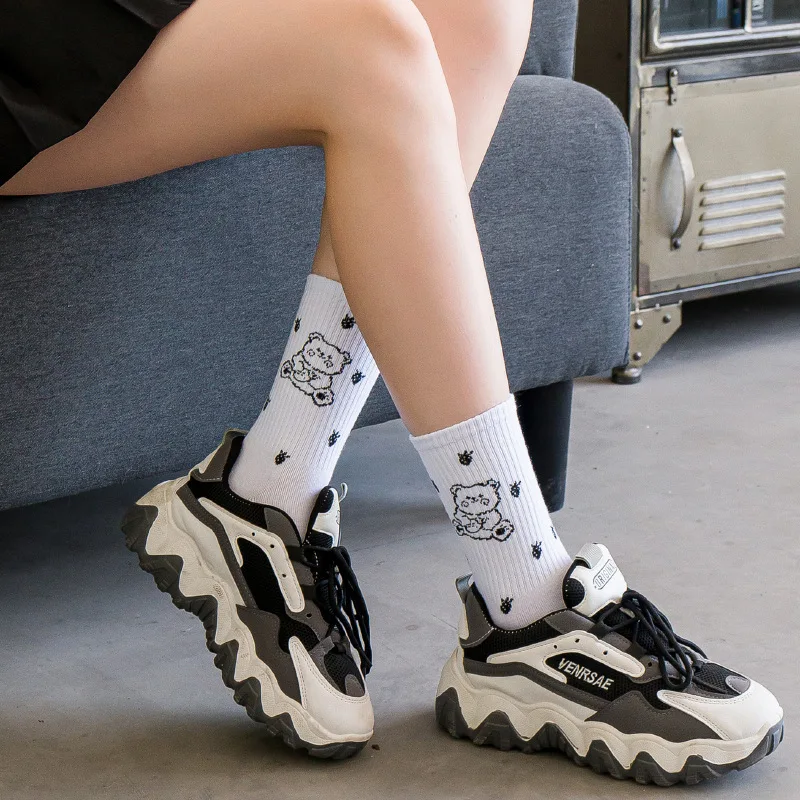 Симпатичные носки с животным принтом медведя в стиле преппи для жен...