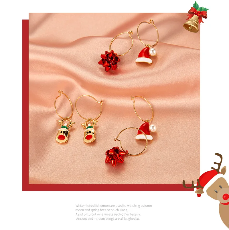 Серьги-капли для женщин 2021, рождественские красные, зеленые, снеговик, колокольчики, девочка, металлическая елка, снежинка, лось, висячие серьги, ювелирные изделия для вечеринки, подарок