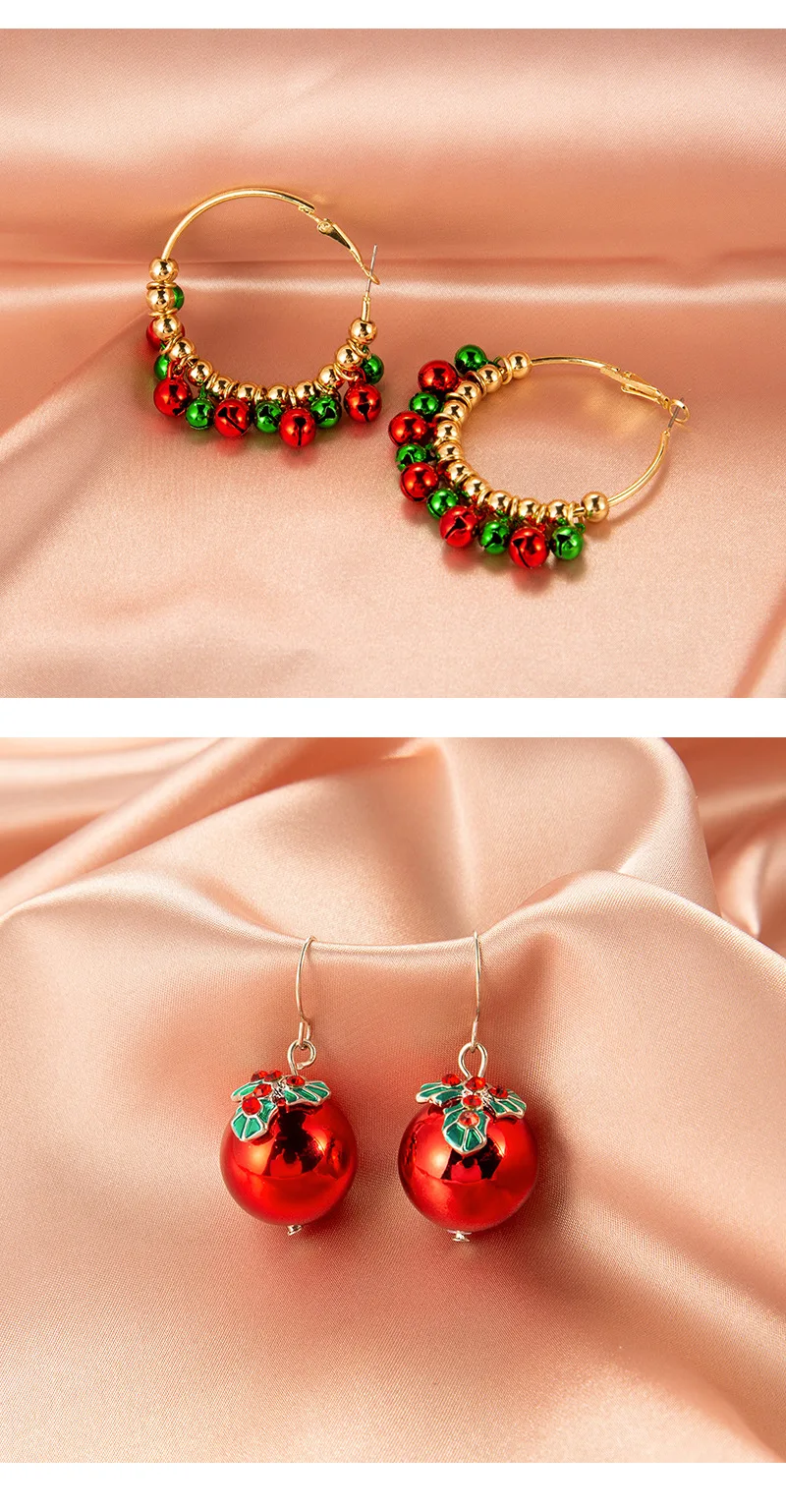 Рождественские аксессуары для девочек, красные колокольчики, серьги...