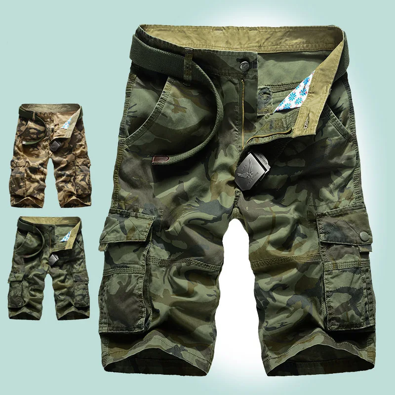 Мужские свободные камуфляжные шорты-карго, повседневные пляжные шорты до колена из 2021 хлопка со множеством карманов в стиле милитари, лето 100%