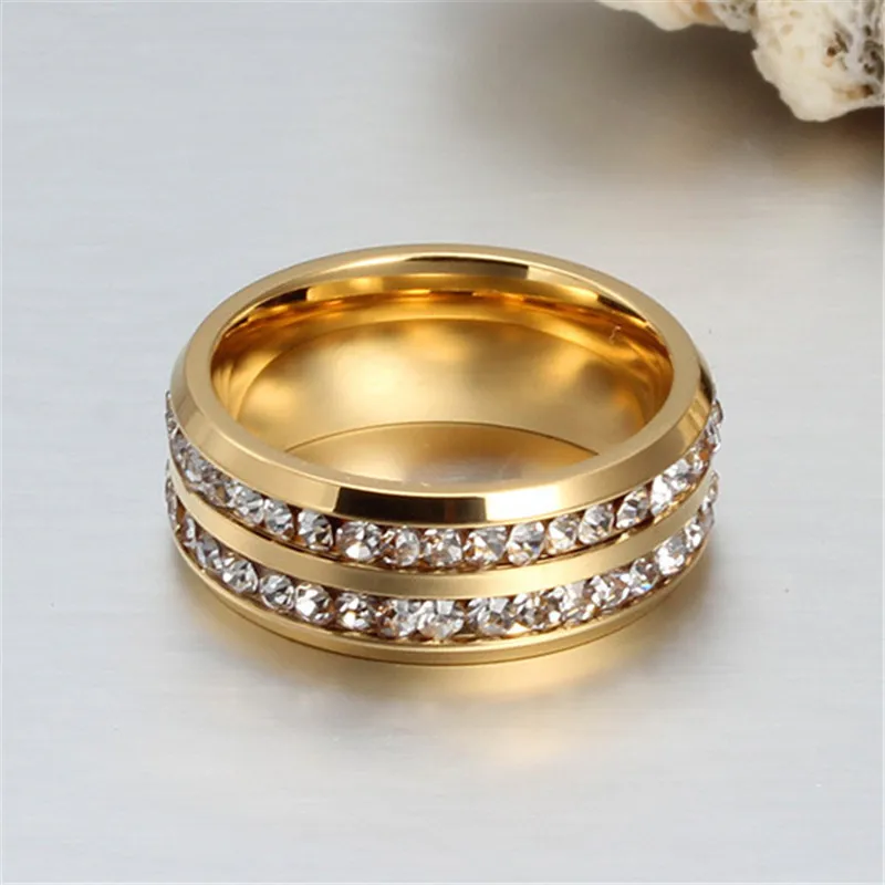 С двумя рядами кристаллов обручальные кольца с камнями для женщин з...