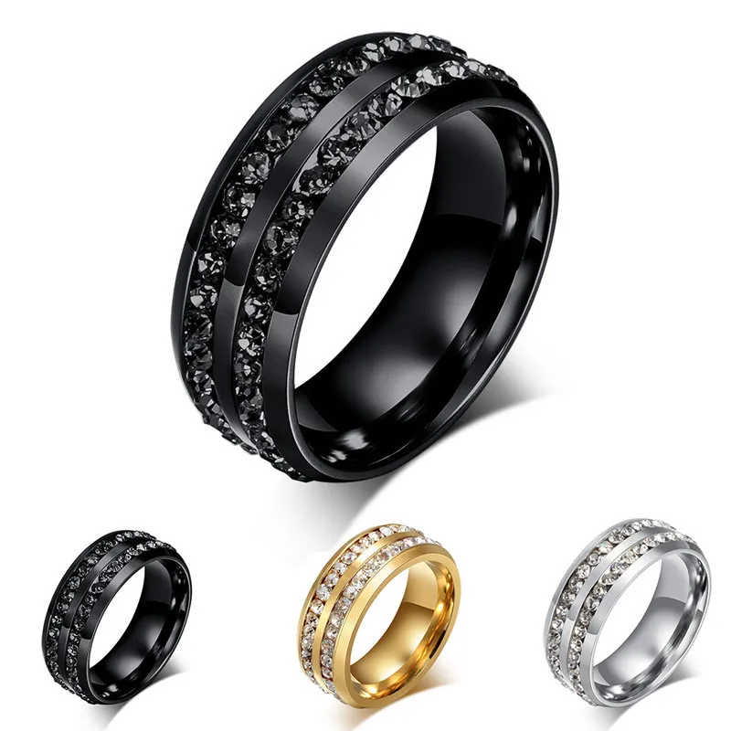 Новинка 2022, модное винтажное мужское обручальное кольцо zorcins в стиле панк из нержавеющей стали черного, золотого, серебряного цветов с кубическим цирконием, 2 ряда