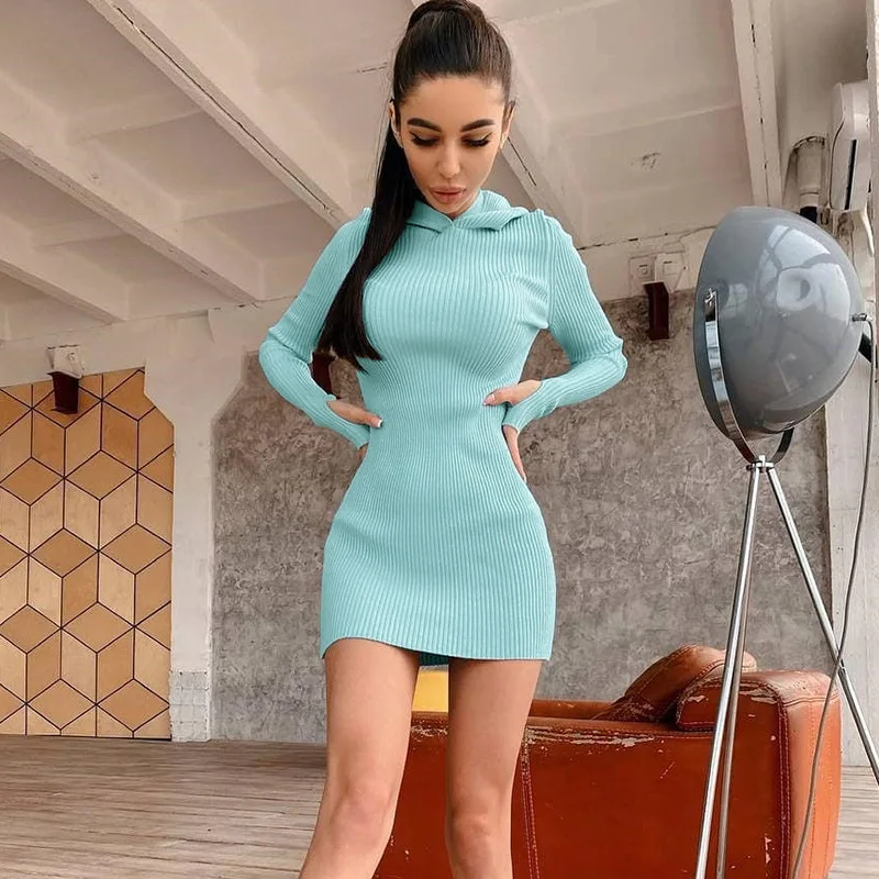 Трикотажное платье с капюшоном, с длинными рукавами, облегающее, мя...