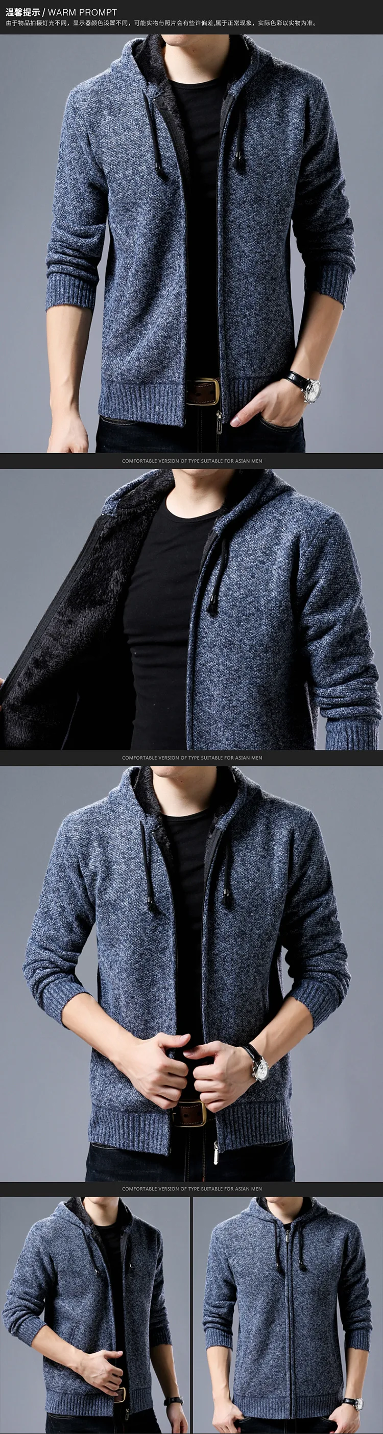 Новый свитер, пальто, Мужской осенне-зимний свитер с капюшоном, кардиган на молнии, плюшевый утепленный свитер в Корейском стиле