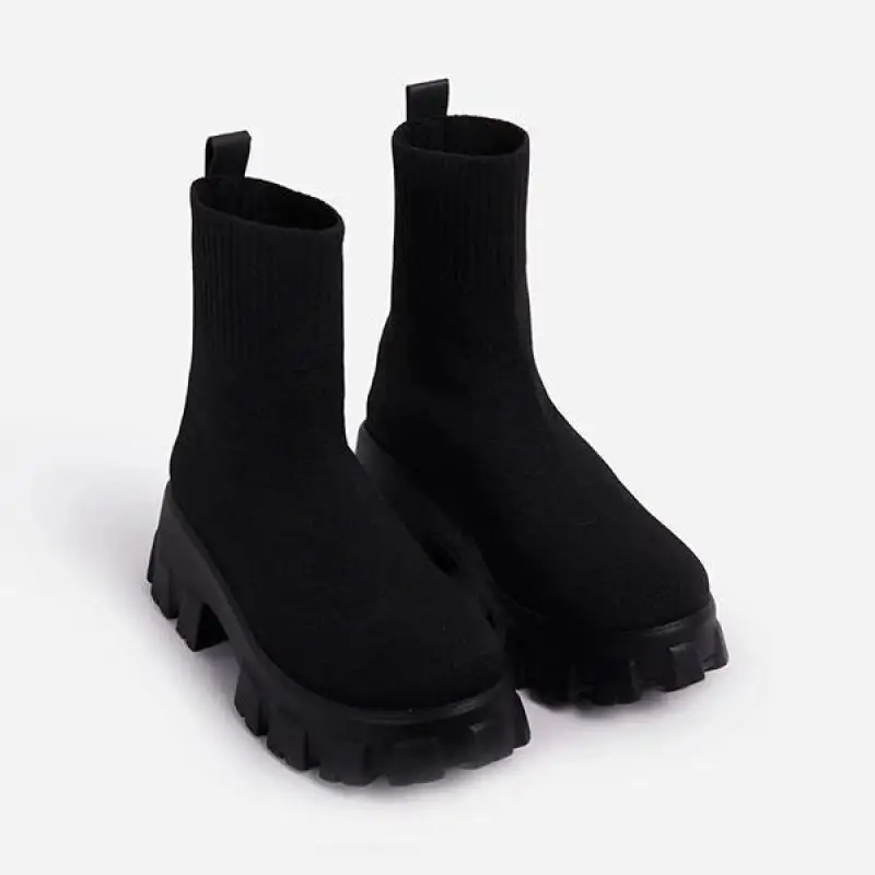 Ботильоны-стрейч, дизайнерские зимние ботинки на массивной платформе, новинка 2021, зимняя теплая Модная вязаная женская обувь Челси на среднем каблуке