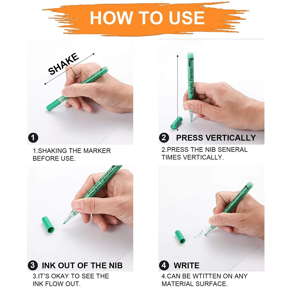 Эти ручки для окрашивания кистей водостойкие. Вам нужно будет испечь, если используется на стекле или керамике или уплотнение герметиком при использовании на поверхности камня, чтобы сделать его постоянным. Советы для отверждения и выпечки стекла, керамики или фарфора: Убедитесь, что поверхность тщательно очищена, вы можете использовать фен, Нагреватель пространства, горячую тарелку и т. д., будьте осторожны! Безопасный и надежный: разработан с качественными чернилами на водной основе, эти маркеры тона кожи отличаются высокой чистотой цвета и сильной скрывающей мощностью, безопасны и надежны в использовании, водонепроницаемы, И не легко выцветает, который можно стирать с кожи и большинства моющихся вещей. Безопасные, нетоксичные, яркие: ASTM D-4236 сертифицированные акварельные маркеры нетоксичные, без запаха и на водной основе. Они являются водонепроницаемыми, защищенными от солнца, герметичными и быстро сохнут. Акриловые маркеры со временем не выцветают. Еще лучше, акриловая хайлайтер плавно скользит без размазывания. Универсальные маркеры: маркер для рисования на водной основе может быть не только нанесен на лица, тела или волосы, но также вы можете использовать его для рисования красивых узоров на плитках, скалах, холсте, стекле, дереве, металл, ткань, фарфор, картон, бумага и самая твердая поверхность. Идеально подходит для наконечника: Маркер ручки с 0,7 мм/2-3 мм наконечник являются идеальным выбором для вашего мажет, создания проектов своими руками или художественного произведения, гладкая в письменном виде легко сохнет и не протекает вода, которая может хорошо сочетаться, чтобы добавить привлекательный эффект к вашей работе. Теплые советы: 1. Пожалуйста, вытяните крышку напрямую, не Поворачивайте ее, потому что вращение головки может привести к утечке чернил; 2. Краска может отделяться от поверхности, когда вы протрите ее теплой водой; 3. Используйте ручку на чистой и гладкой поверхности.