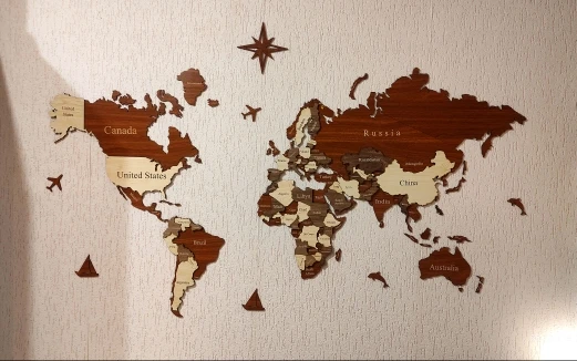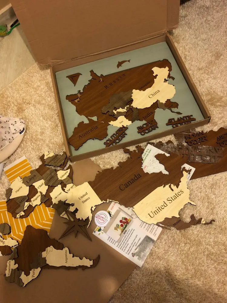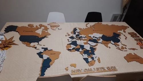 Концепция сделана достаточно хорошо. ЧПУ отработал точно, без зазубрин и заусенец. Карта выполнена как бы в объёме, с применением наслоения некоторых стран на континентах. Имеется инструкция на английском, достаточно понятная. Были несколько недостатков. Первое, несколько мысов все таки откололись. Изготовителю и упаковщику необходимо продумать более надёжную упаковку. Информации на коробке для транспортировщиков о том, что внутри хрупкий груз, видимо, не достаточно. Отколовшиеся элементы приклеил обратно на суперклей. Второе, почему-то положили два правых трафарета. Трафареты необходимы что бы отцентровать континенты с Запада и Востока одновременно. Пришлось, идти только с Востока используя глазомер, ориентируясь на графическую карту мира. В целом получилось очень классно! P.S. в виде пожелания изготовителям. Понятное дело, что во всем мире принята проекция Меркатора. Но, может как-то придумать и изготовить страны в реальном масштабе, пусть и с пробелами на границах? Спасибо!
