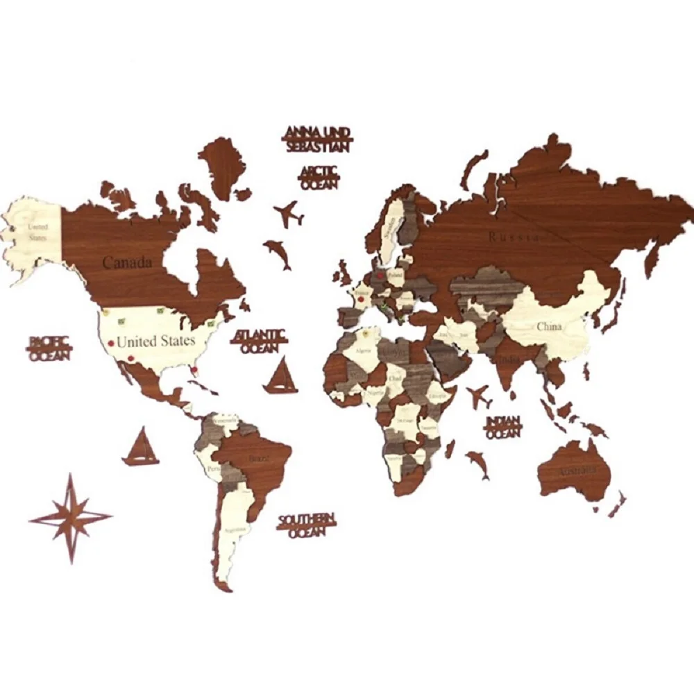 3D Деревянная Карта Мира Декоративная Гостиница Офис Гостиная Деревянный Декор Стен Европа Азиатские Континенты Карта Реального Мира Табличка Булавки Домашний Подарок Настенные Художественные Плакаты Натуральный Цвет