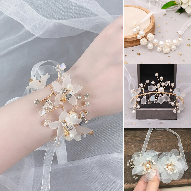 Корейский женский белый красивый браслет с цветами, свадебный подарок, браслет с лентой, роскошный браслет