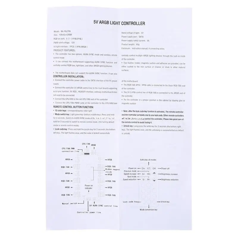 5V 3Pin Беспроводной 5V RGB 2-в-1 PWM и ARGB контроллер концентратор 8 Порты 12V 4Pin вентилятор; Прямая поставкаOOTDTYХарактеристики: это концентратор ARGB PWM 2-in-1 8 way с питанием SATA 15 pin, который может поставить питание для вентиляторов и устройств ARGB одновременно.Расширьте интерфейс материнской платы шасси, чтобы решить проблему недостаточности интерфейсов материнской платы.Питание от PSU, снижение нагрузки материнской платы, уменьшение перегрузки материнской платы и тепла, широко используется в компьютерных системах водяного охлаждения ПК и нескольких режимах освещения RGB.До 8 наборов адресуемых RGB (5 В 3pin) вилок и 8 наборов PWM (12 В 4pin) вилок для удовлетворения ваших потребностей подключения большего количества устройств.Интерфейс одновременное Запуск 8 способ вентиляторы, ARGB все синхронизировать между всеми вентиляторы, один параметр относится ко всем вентиляторы.Характеристики: Тип изделия: 2в1 контроллер концентратораЦвет: черныйМатериал: АБС-пластикРазъем питания: SATAВентилятор ШИМ напряжение: 12 ВRGB 3Pin напряжение: 5 ВКоличество: 1 комплектВес: 67 гРазмер: пожалуйста, посмотрите изображенияВведение установки:1. Подходит для 12 В 4PIN вентилятора PWM регулирования скорости (3 pin вентиляторы также могут быть подключены, но без функции регулирования скорости PWM)2. Вставьте концентратор в интерфейс SATA источника питания компьютера3. Кабель PWM соединен с гнездом вентилятора процессора материнской платы. Вентилятор процессора компьютера должен быть подключен к красной 4-контактной розетке вентилятора расширителя4. Подключите кабель ARGB к материнской плате.5. Закрепите концентратор на внутренней стенке шасси.Посылка включает в себя: 1x3 фута Motherborad PWM RPM отзывы кабель включает в себя.1X 2ft материнская плата 3pin ARGB кабель включает.1 беспроводной ИК-пульт дистанционного управления. Не требуется поддержка ARGB материнской платы.Примечание: товар совместим только с 3-контактными rgb-заголовками 5 В или контроллерами, не Подключайтесь к компонентам RGB 12 В, в противном случае он может сгореть.Убедитесь, что пульт дистанционного управления использует расстояние менее 6,6 футов.Из-за проблем с световыми эффектами и углами съемки, в продукте будут определенные допуски, пожалуйста, поймите.Допускается погрешность 0-2 мм из-за ручного измерения.