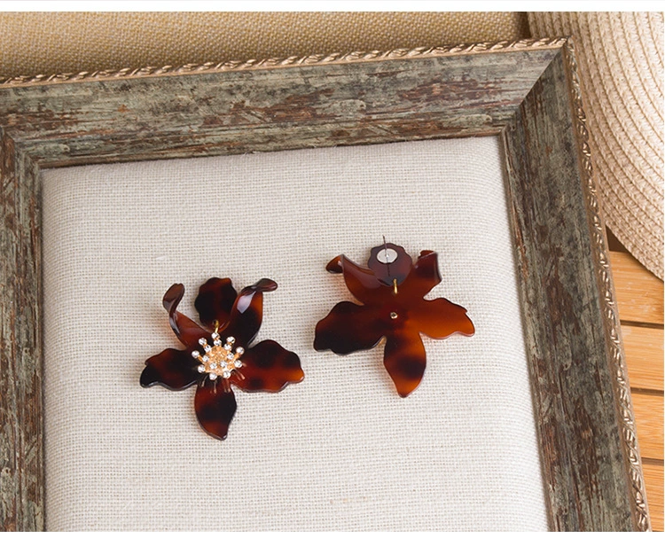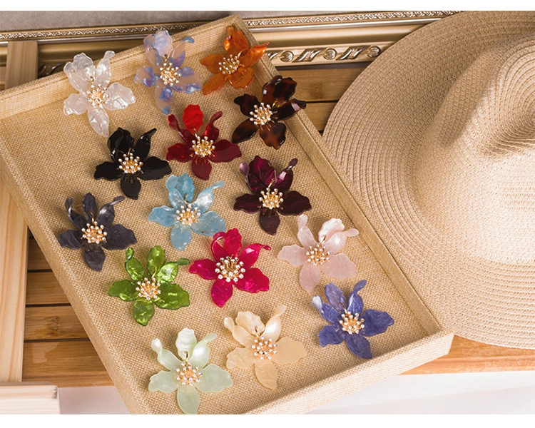 Модные женские серьги в форме цветка из смолы, серьги преувеличенная индивидуальность, серьги с лепестками для девочек, акриловые серьги с вогнутыми ушками, вечерние ювелирные изделия, подарки