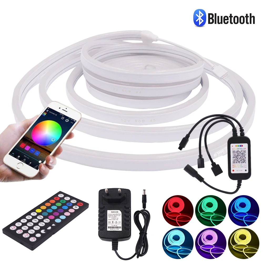 Bluetooth RGB неосветильник SMD5050 72 светодиодам ленточный диод гибкий неоновый свет 12 В 12 В умная музыка синхронизация Водонепроницаемый светодиодный знак