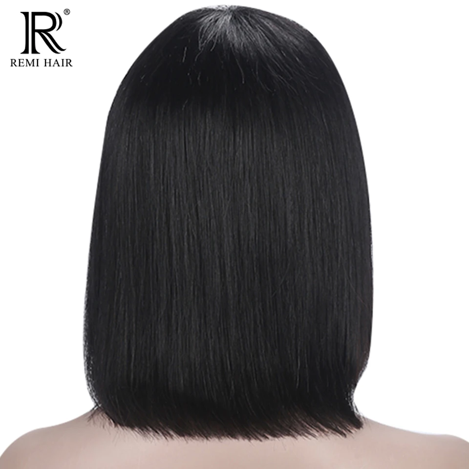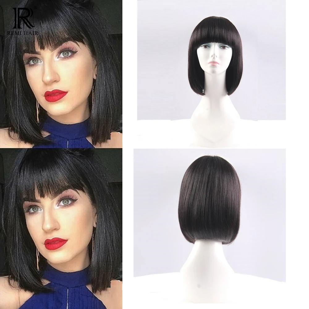 REMI короткие парики с челкой, прямые человеческие волосы для черных женщин 8-14 дюймов, 100% бразильские натуральные волосы естественного цвета