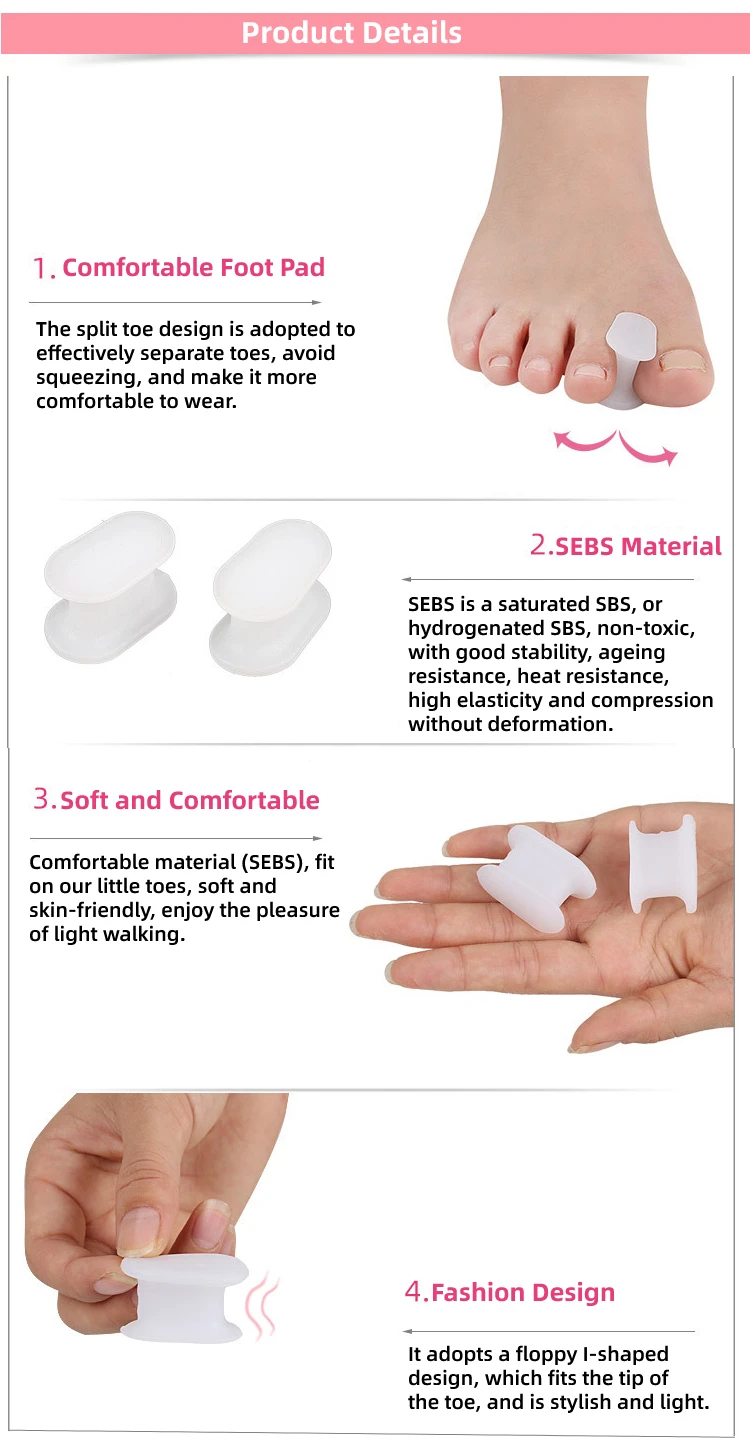 1. Наш гелевый разделитель носка обеспечивает мощную поддержку между большим носком и вторым носком, чтобы снять дискомфорт.