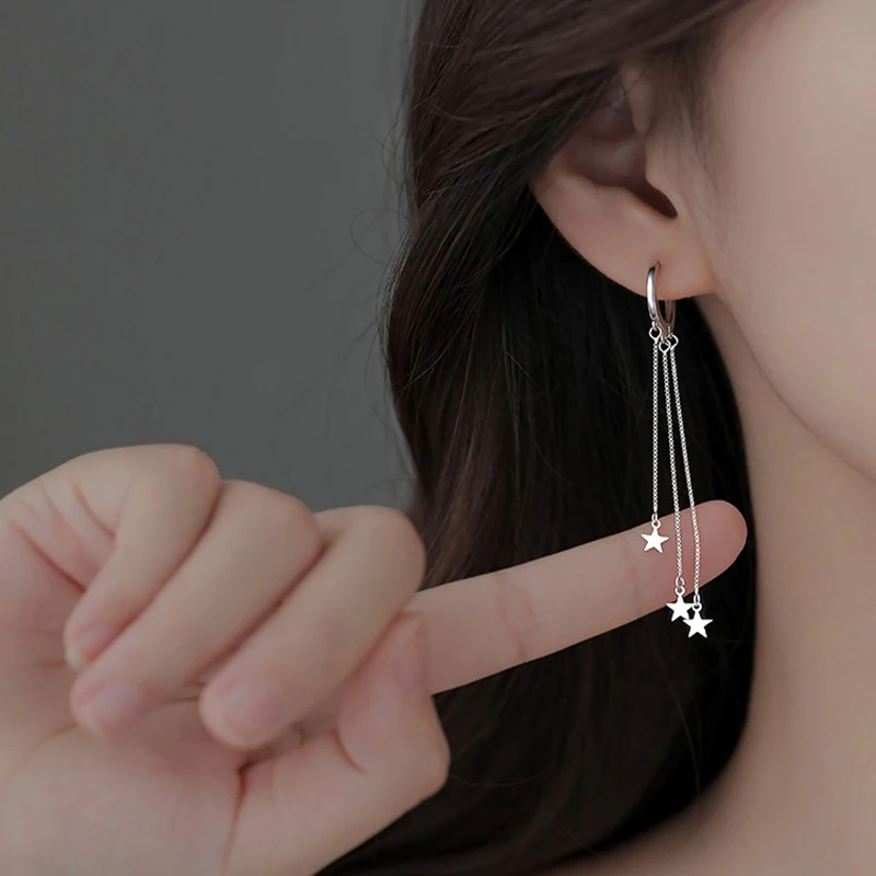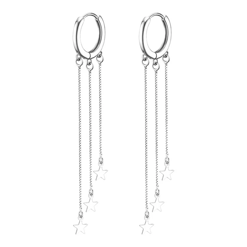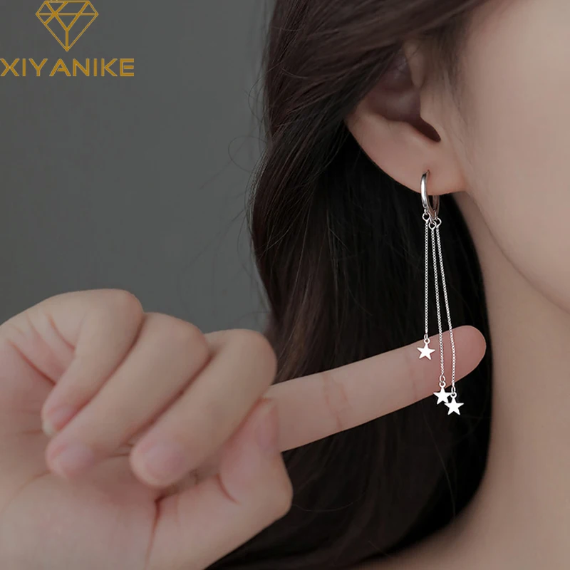 Длинные серьги-кольца XIYANIKE серебристого цвета с кисточками и звездочками, женские блестящие романтические украшения, подарок для любимых, оптовая продажа